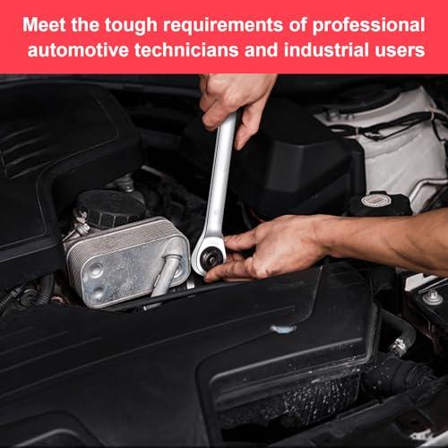 Features a 72-tooth ratcheting mechanism for precise control and easy access in tight spaces.