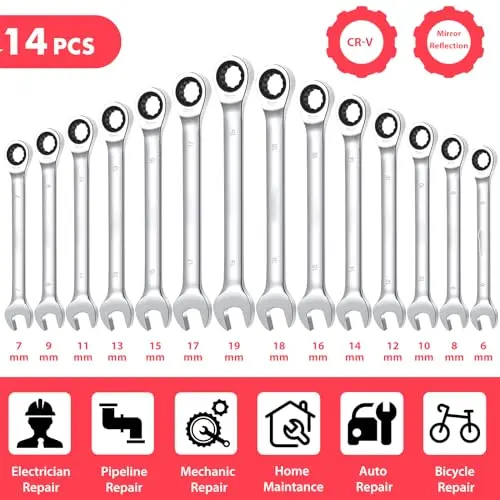 Professional-grade 14-piece ratcheting wrench set for all your mechanical needs