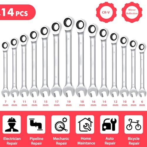GARVEE 14 Pieces Ratcheting Wrench Set: Professional-Grade Tools for Every Job