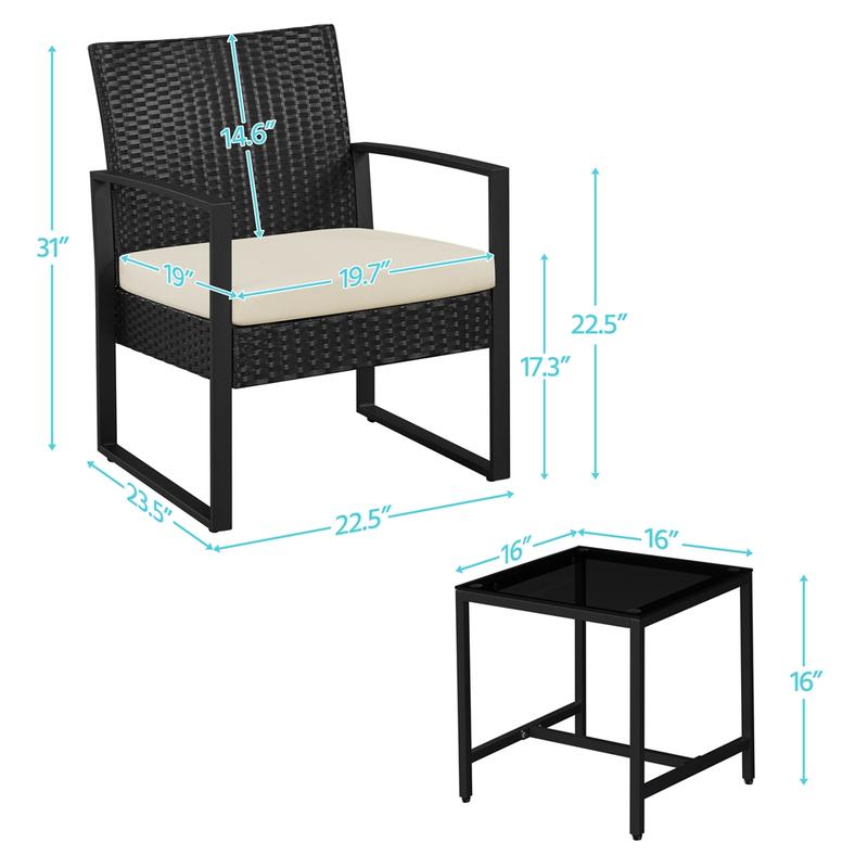 1. 3-Piece Outdoor Set: This set includes two chairs and a coffee table made of PE rattan with a powder-coated iron frame. It’s a stylish and comfortable addition to your outdoor space.