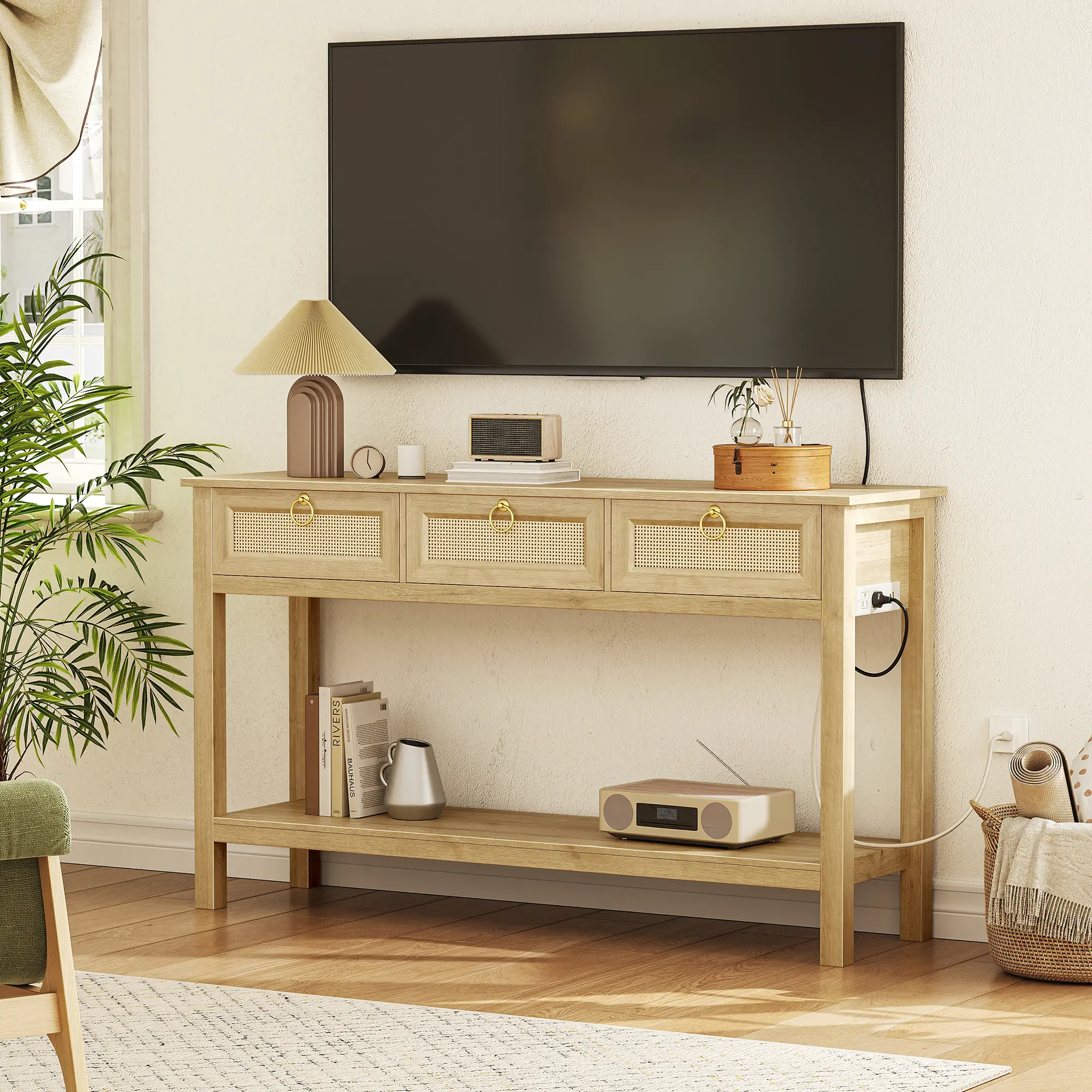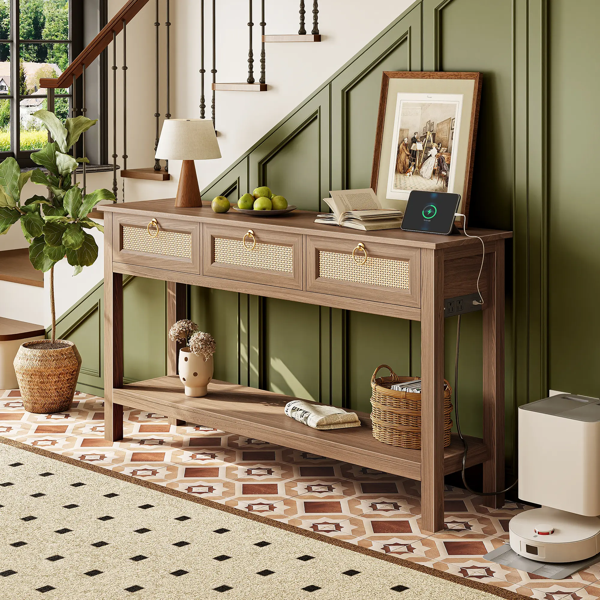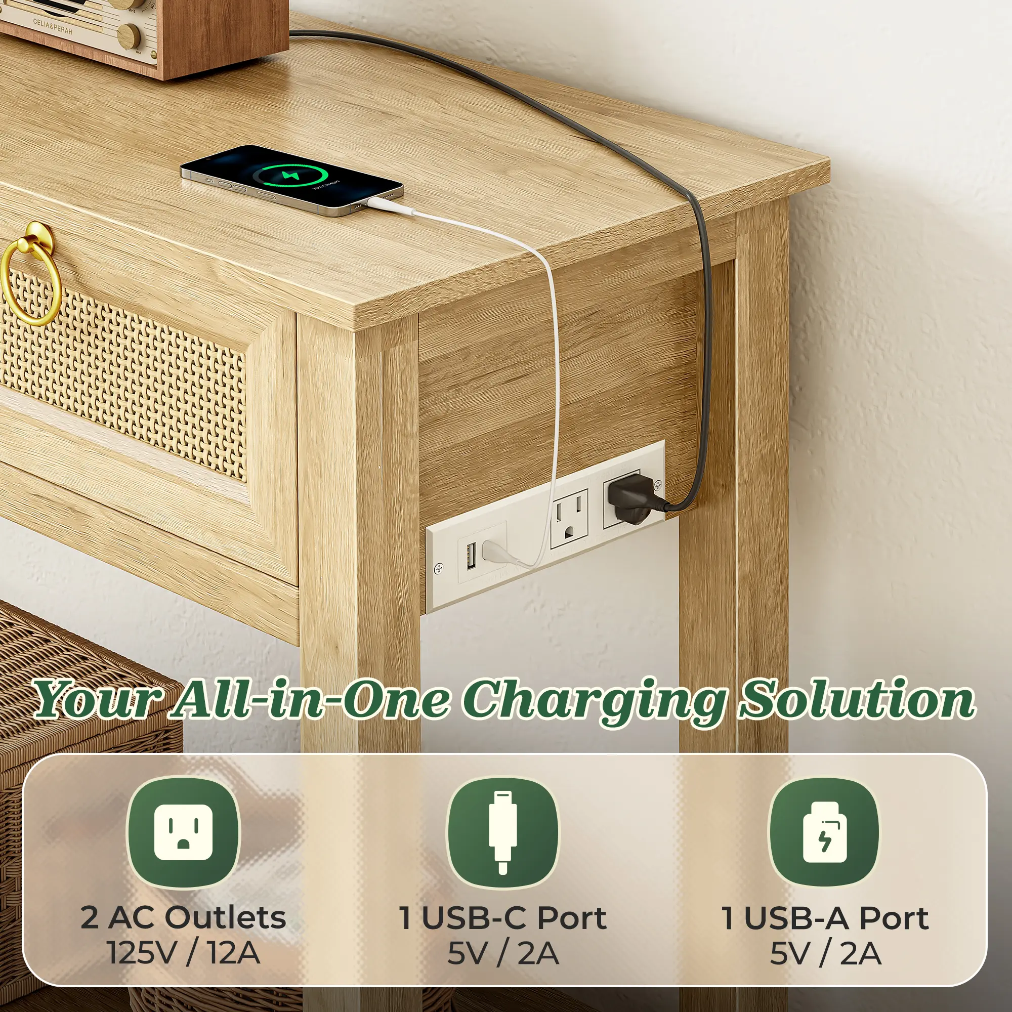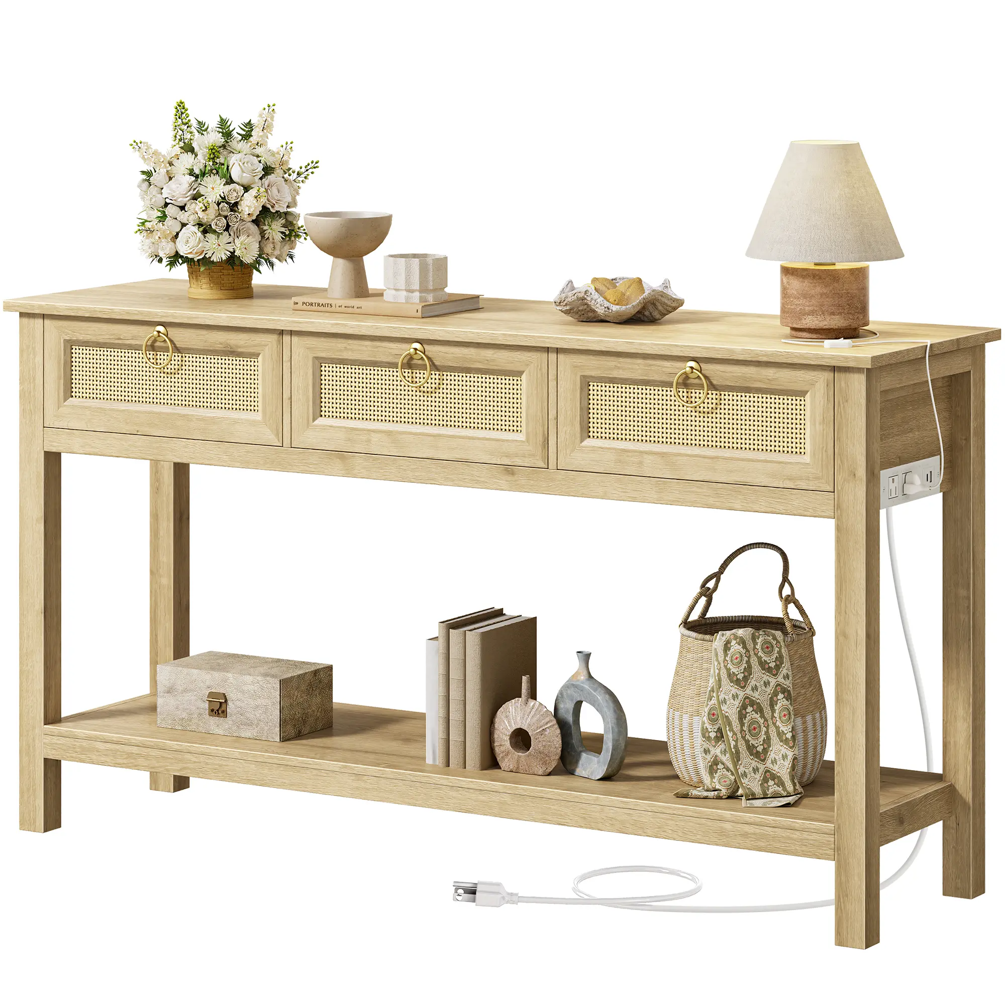 ·【Organize Your Life, Naturally】The natural synthetic rattan combined with light oak tones brings a breezy, boho elegance to your space. Whether your home leans Scandinavian, Japandi, vintage American, or tropical retreat, this console table with drawers fits right in. Plus, the water-resistant top wipes clean in seconds, helping you maintain that fresh, airy vibe every day