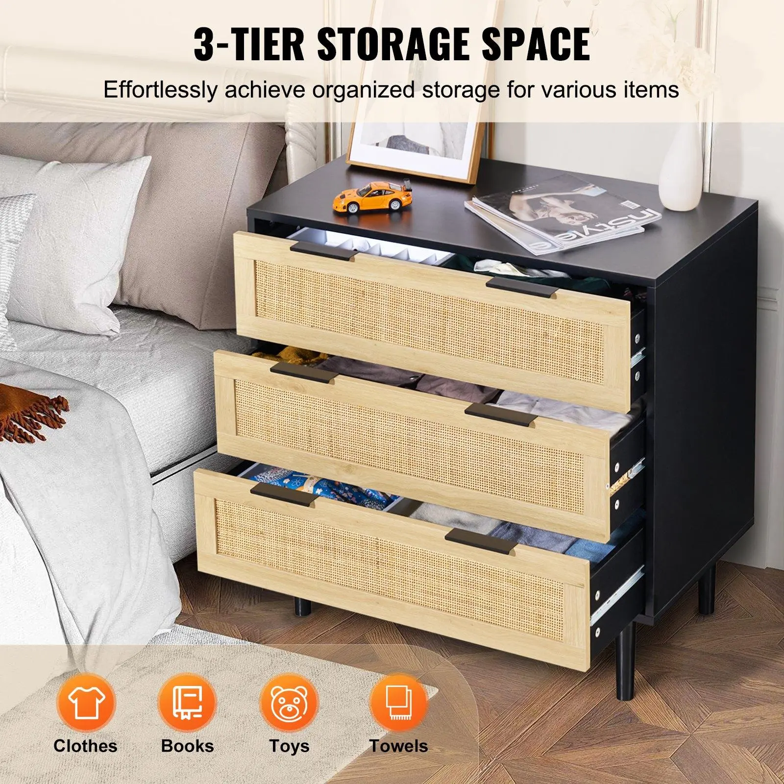 ·Large Storage Capacity: This rattan dresser features three roomy drawers, ideal for organizing your space. Whether in your bedroom, living room, or hallway, it’s a chic addition that holds up to 10 lbs per drawer and 30 lbs on top - ideal for everyday use.