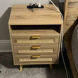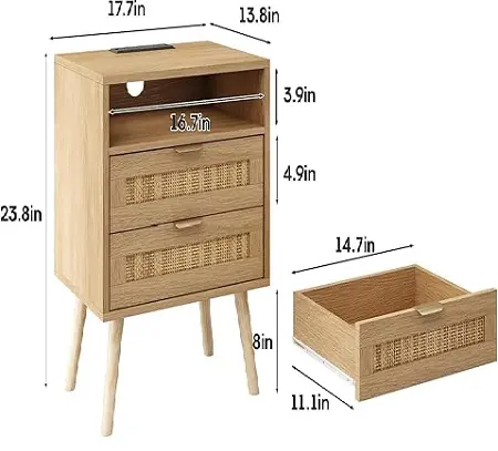 Multifunctional and Spacious: Measuring 13.78"D x 17.72"W x 23.62"H, this boho nightstand features 2 rattan drawers and 1 open storage design, providing ample space to organize your belongings and keep your space tidy. The drawer slides smoothly for easy access. The exquisite boho design allows for versatile use as a living room table, side table, bed table, sofa table, or simple storage cabinet.