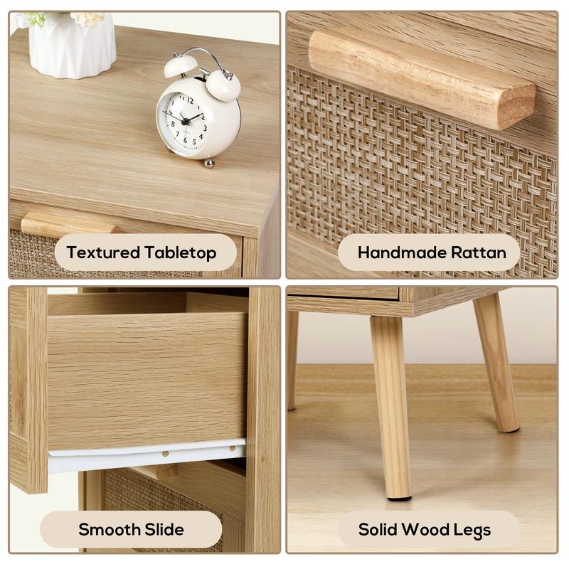 The classic and modern design of our nightstands will add charm to any room in your home. The natural rattan with handmade weaving technology creates a beautiful aesthetic that is both practical and visually appealing.