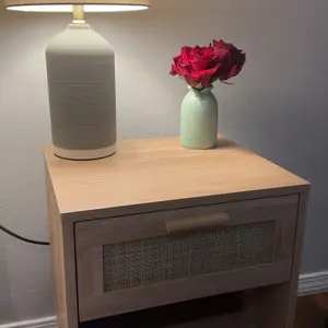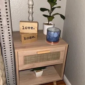 so cute and looks way better than my old nightstand. the drawer being out a little too far is my fault, i’m just too lazy to reinstall it