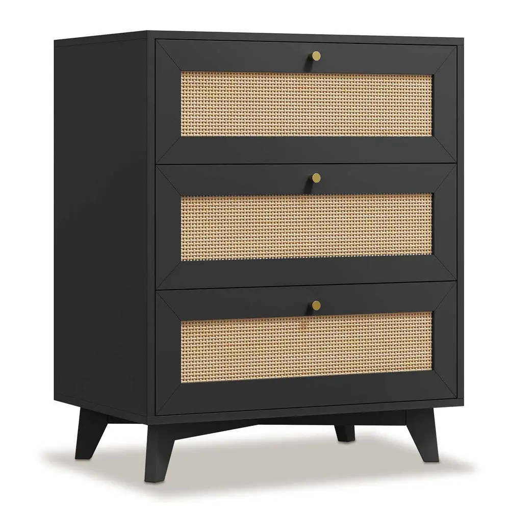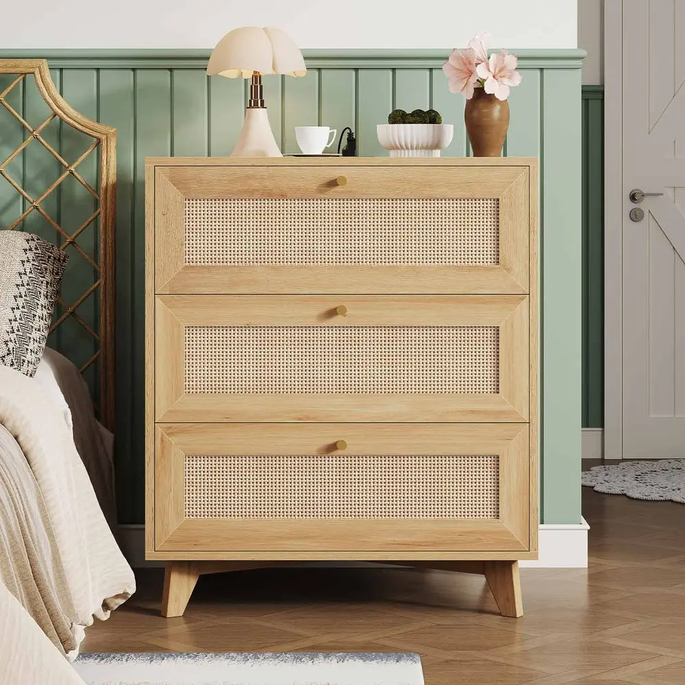 Constructed with thickened FSC-certified wood and natural rattan, this nightstand resists scratches and moisture while offering lasting stability. Reinforced legs, premium metal rails, and sleek golden handles ensure smooth operation and strong load-bearing capacity, making it perfect as a storage drawer, compact dresser, or stylish organizer.