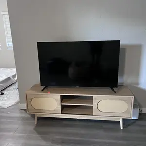 MODERN SIMPLE STYLE:The TV cabinet is equipped with 2 sliding rattan doors. Natural and elegant tones can easily blend into your living space, giving you a completely different visual experience. Overall dimensions: 59" (W) x 15.7" (D) x 19.7" (H).