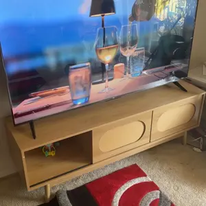 PREMIUM MATERIALS:Made of high-quality engineered wood and MDF, stain-resistant and easy to clean, the rattan TV console has a sturdy structure and materials to withstand the challenges of long-term use.