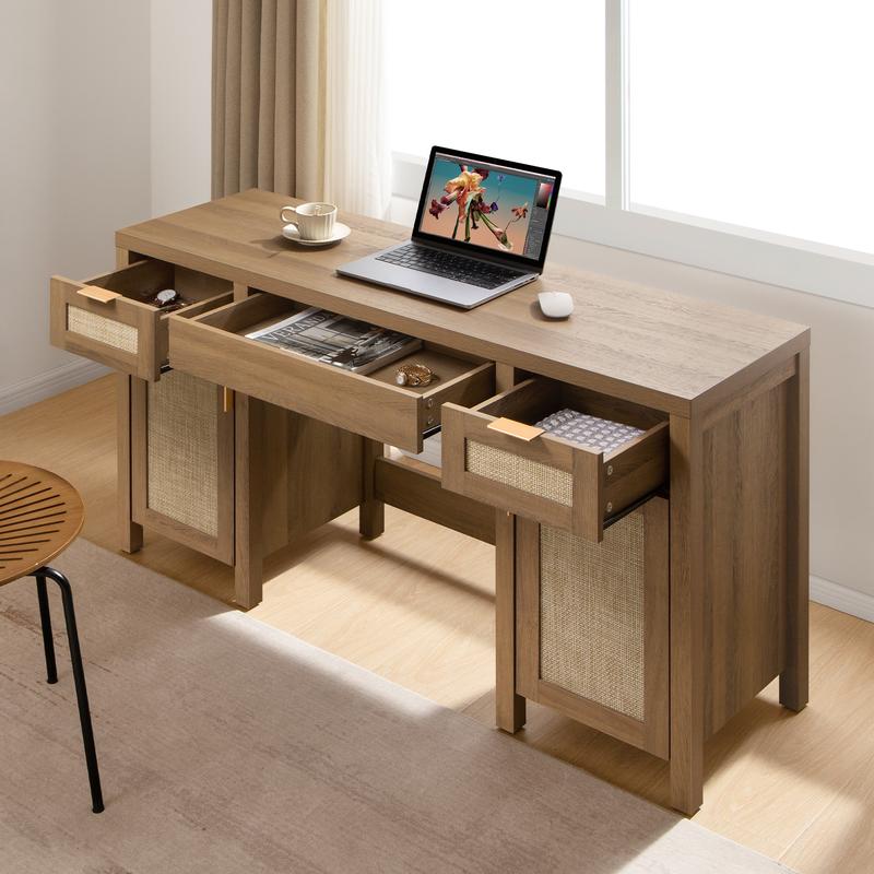 ·【Unlimited Boho Glamour】: This wooden vanity office desk sports a sophisticated rattan mesh finish and a textured wood grain surface for the ideal combination of farmhouse charm and classic vintage styling. The simple yet elegant look adds a unique appeal to your space while perfectly complementing any furniture in your home, effortlessly creating a cozy home atmosphere.