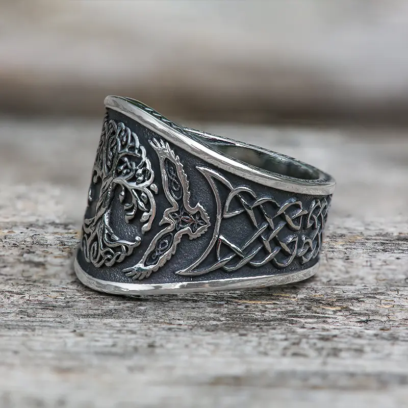 ·Odin's two ravens perched on the tree of life, they are Odin's eyes on earth. And the tree of life is the source of wisdom and power, it is the carrier of the world and life. Wisdom and strength coexist, our raven tree of life ring you deserve!