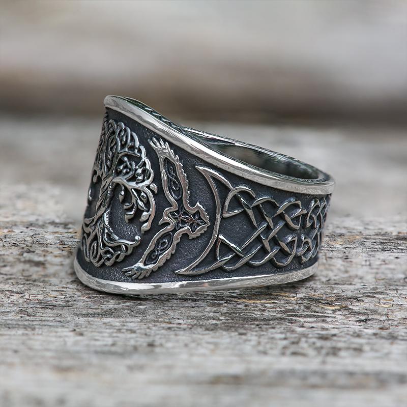 ·Odin's two ravens perched on the tree of life, they are Odin's eyes on earth. And the tree of life is the source of wisdom and power, it is the carrier of the world and life. Wisdom and strength coexist, our raven tree of life ring you deserve!