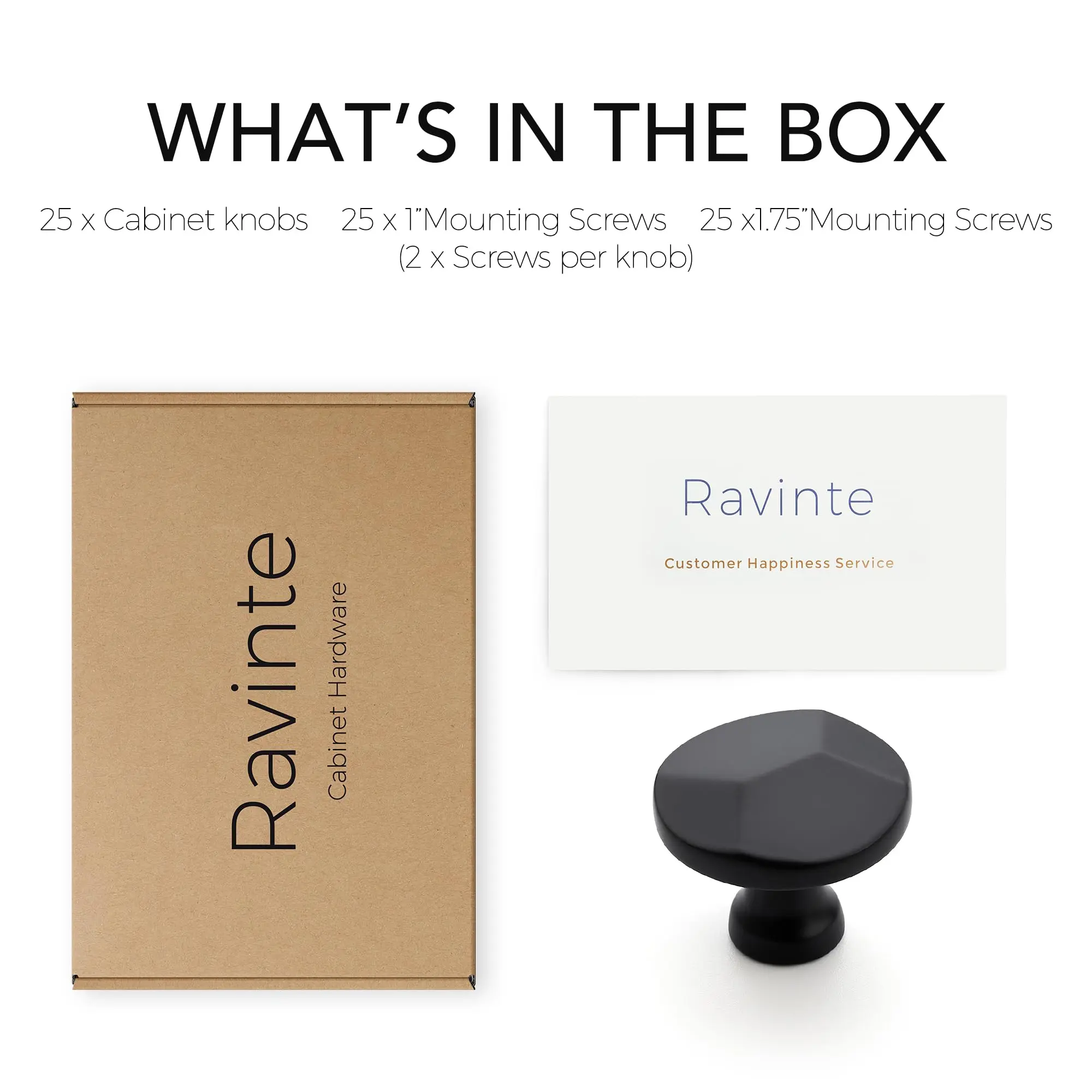 ·Package include : There are 25 pack knobs and two size screws(25*1" screws and 25* 1.75" screws) in the box.The screws can meet your different needs .