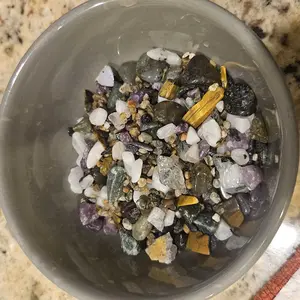 Got my bucket in the mail today. So freaking happy. There was WAY more in here than I was expecting. I had so much fun digging through the bucket to find my treasures. I have a tumbler may think of tumbling them.