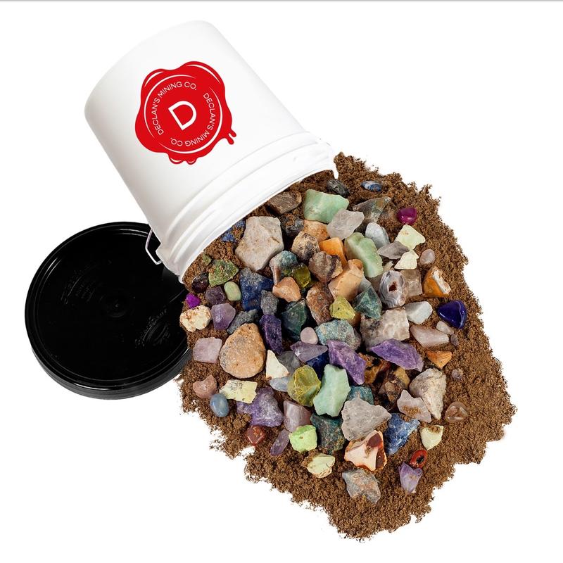 A beautiful assortment of crystals, fosssils, minerals, and stones!! All wrapped in confetti sand for your mining enjoyment!! We had so much fun with this bucket!!