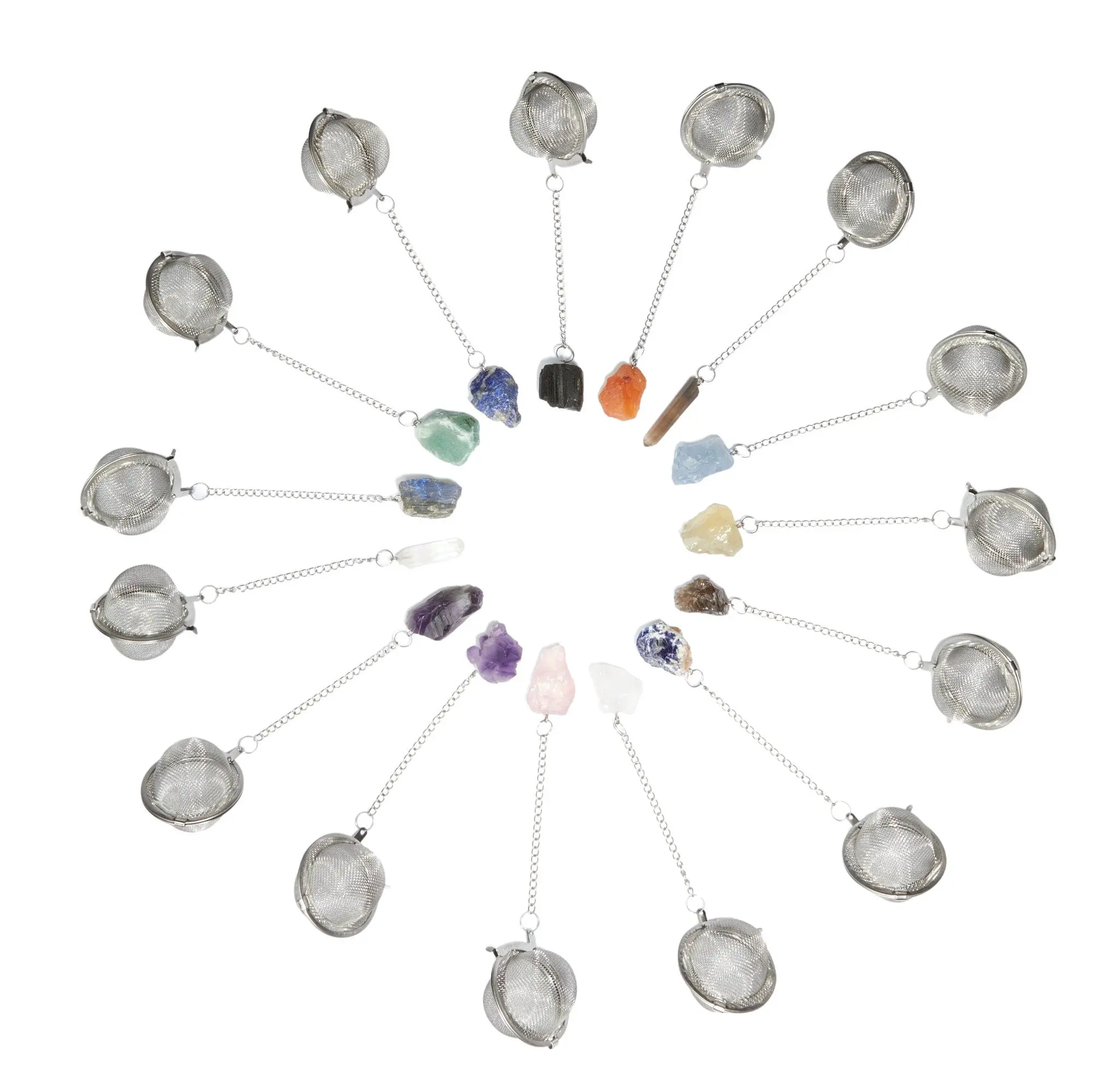 These are Stock Photos of our Tea Strainer collection. Each crystal is natural and will have variation in natural characteristics such as size, color, and shape.