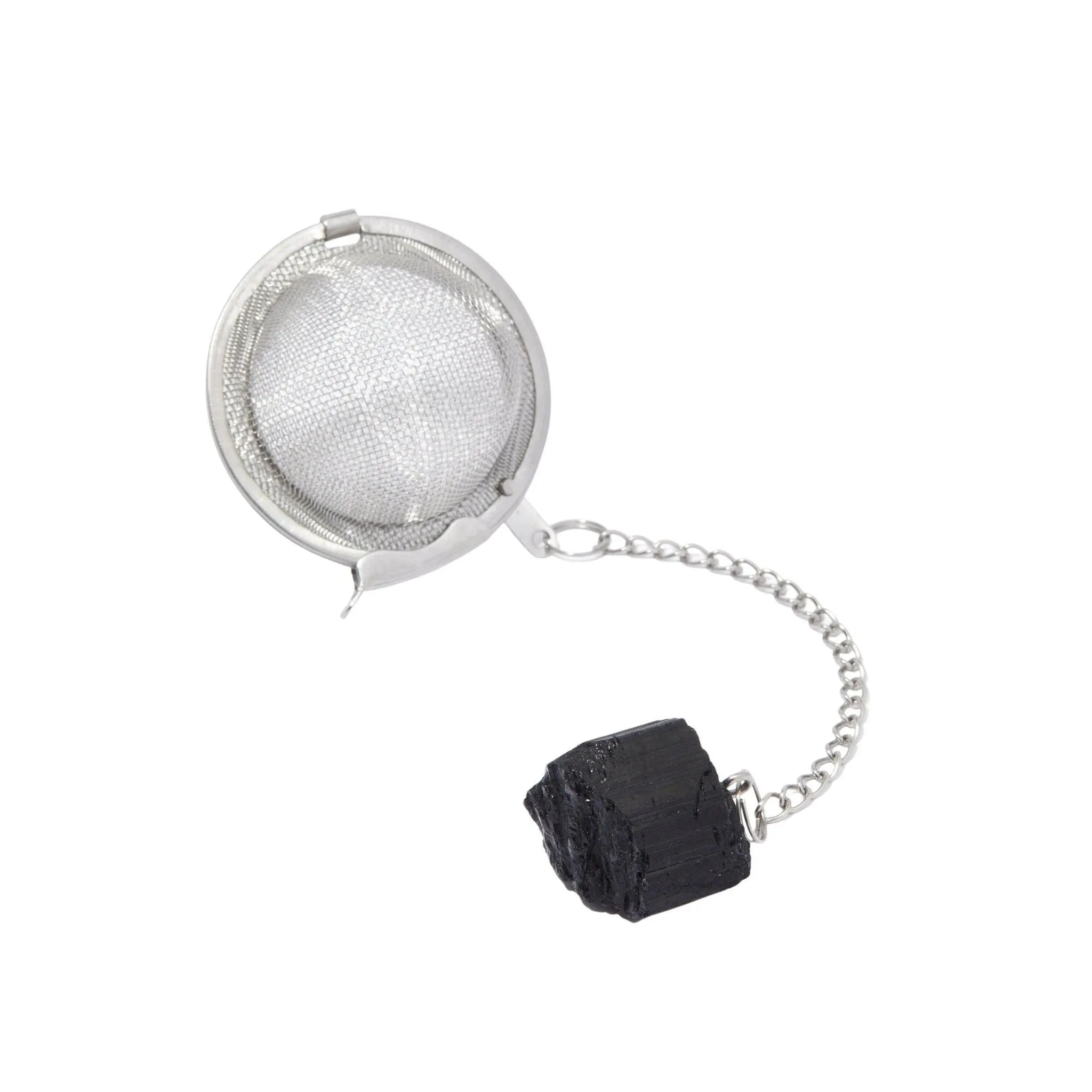The crystals measure about 1 inch and the chain is approximately 3 inches in length. Our 304 stainless-steel tea ball features fine mesh and closes on the side to secure the tea leaves. The crystal hangs on the outside of the mugs to balance the the tea ball.