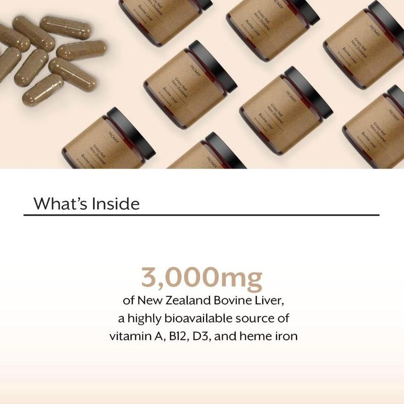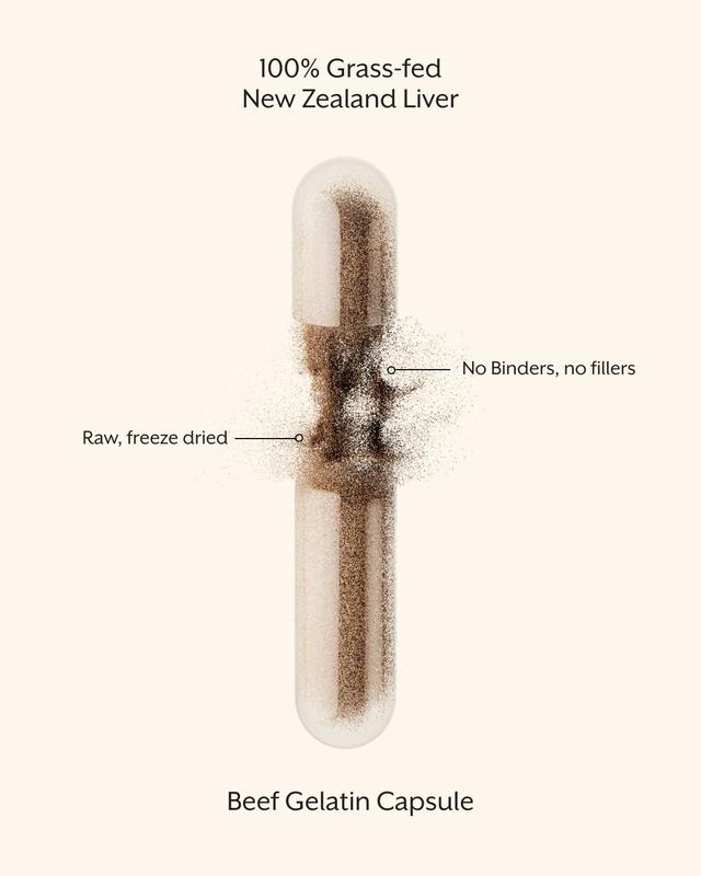 Grass-fed New Zealand Bovine Liver. These capsules enhance liver function with active nutrients and provide essential vitamins and minerals. Perfect for those seeking natural liver support.