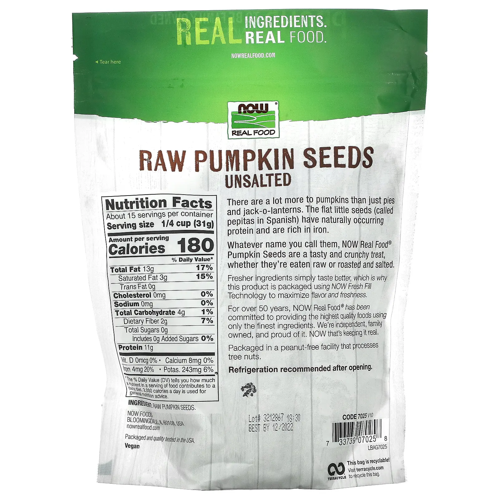 5. NOW Foods Real Food, Raw Pumpkin Seeds, Unsalted, 16 oz (454 g)