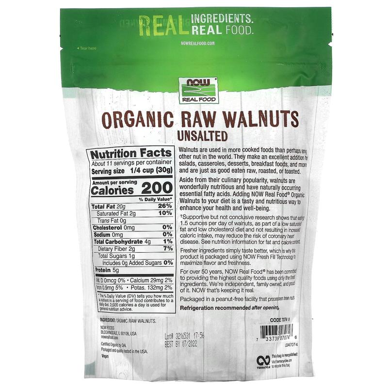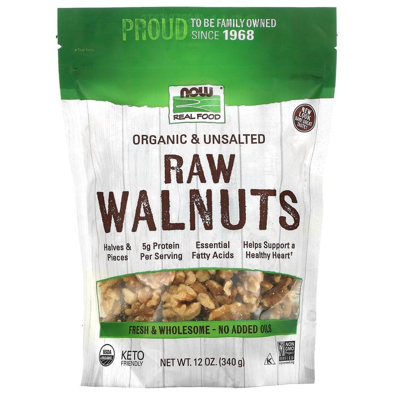 NOW Foods Real Food, Organic Raw Walnuts, Unsalted, 12 oz (340 g)