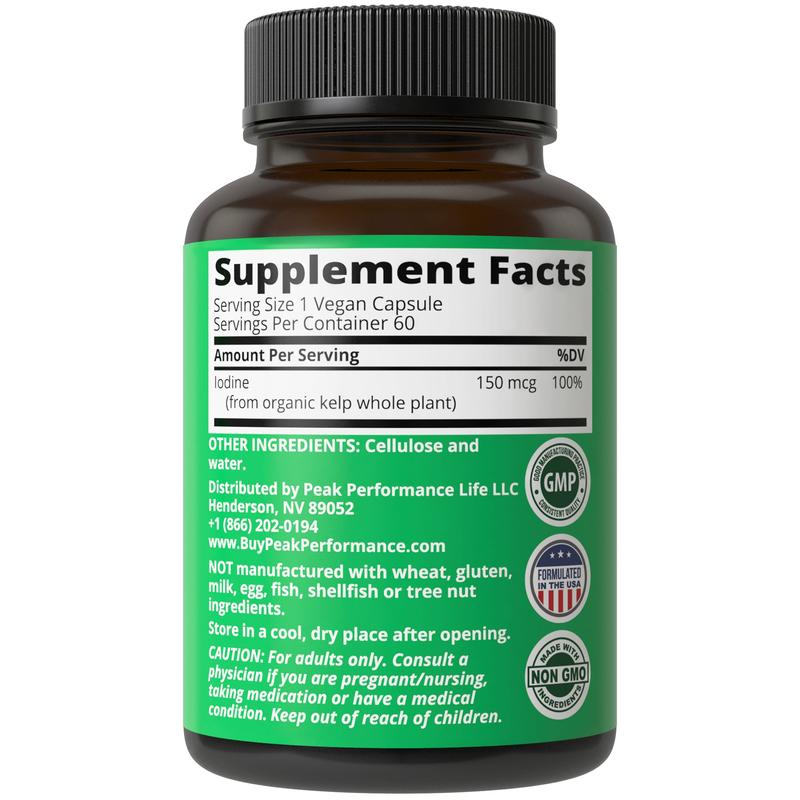 ·Don't Be Fooled By Cheap Imitations - Most Iodine supplements use weak formulas with synthetic vitamins as well as fillers. Peak Performance offers one of the most potent sources of iodine from Raw Sea Kelp.*