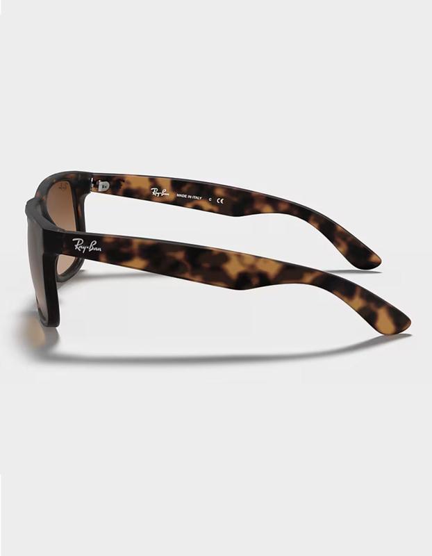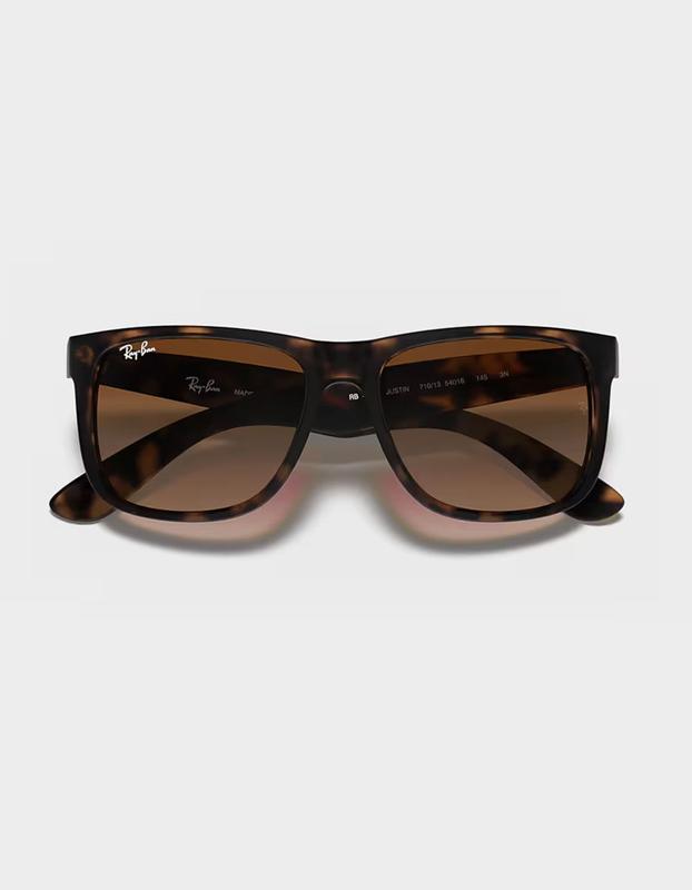Ray-Ban Justin Sunglasses. Square frame shame. Matte Havana frame color. Injected frame material. Dark brown gradient lenses. 54 16mm size. 43.9 mm lens height. 145mm temple length. Standard face coverage. high bridge fit. Imported.     CALIFORNIA PROPOSITION 65 WARNING: This product can expose you to the chemical Nickel (Metallic), which is known to the State of California to cause cancer, and Bisphenol A (BPA), which is known to the State of California to cause birth defects or other reproductive harm. For more information go to www.P65Warnings. ca. gov. California Health & Safety Code Section 25249.6