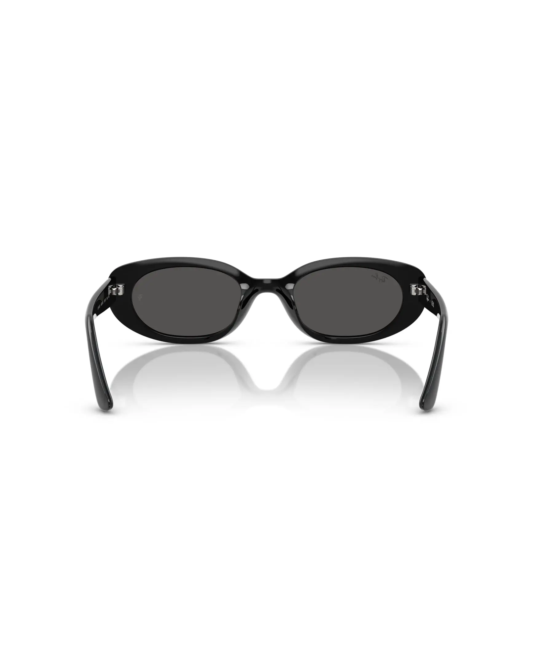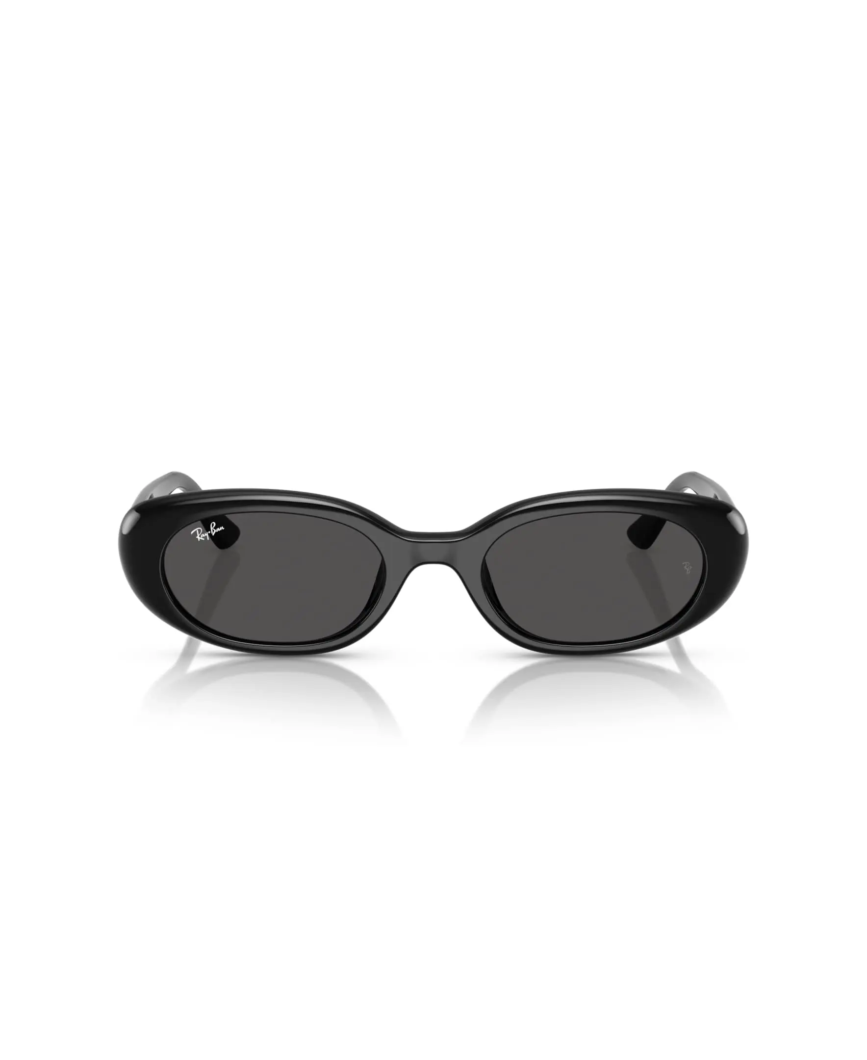 Ray-Ban RB4441D redefines the pillow shape with a modern twist. These unisex sunglasses feature solid dark grey lenses and black frames. The design ensures a stylish look that turns heads. Perfect for an active lifestyle, the resilient material provides durability.
