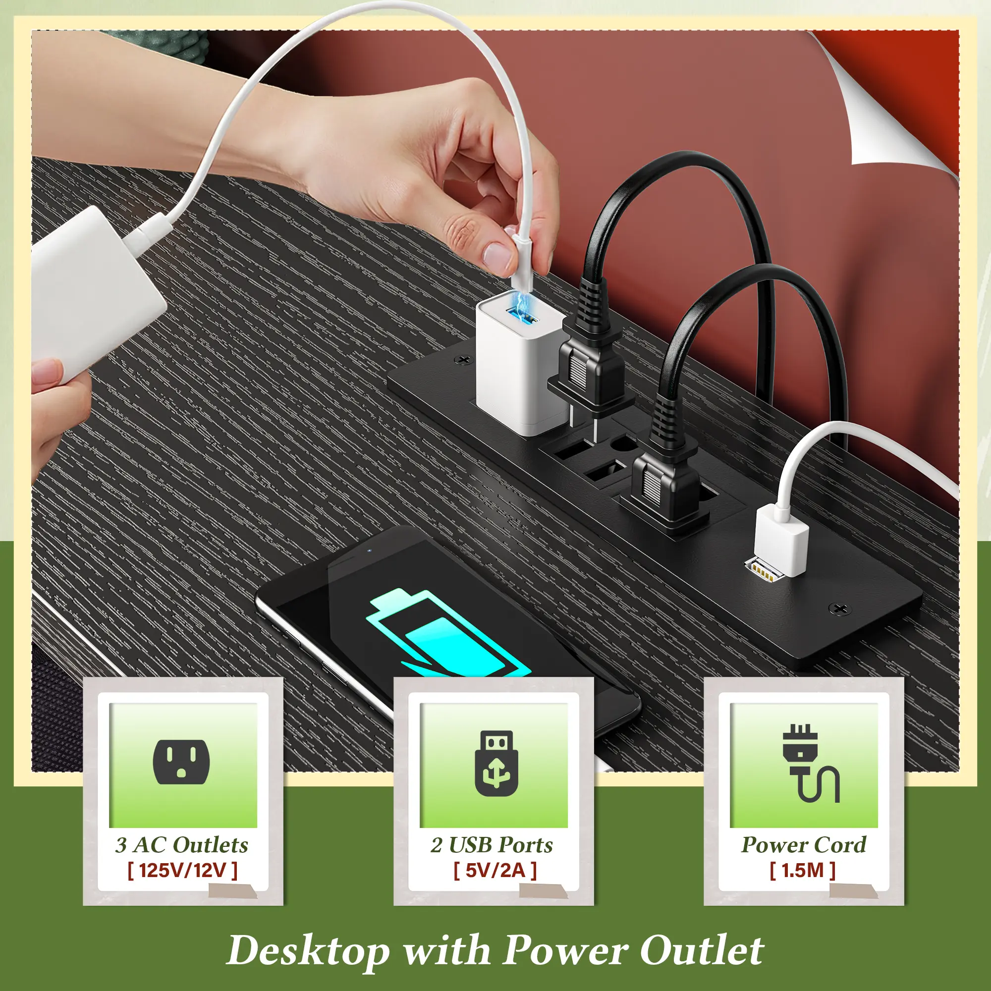 ·Built-in Charging Station: Equipped with 3 power outlets and 2 USB ports, this dresser eliminates the need for tangled cords, allowing you to charge multiple devices conveniently and effortlessly.