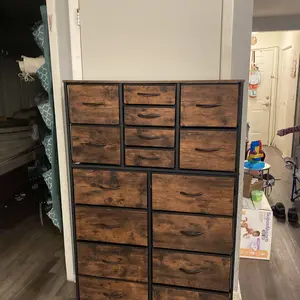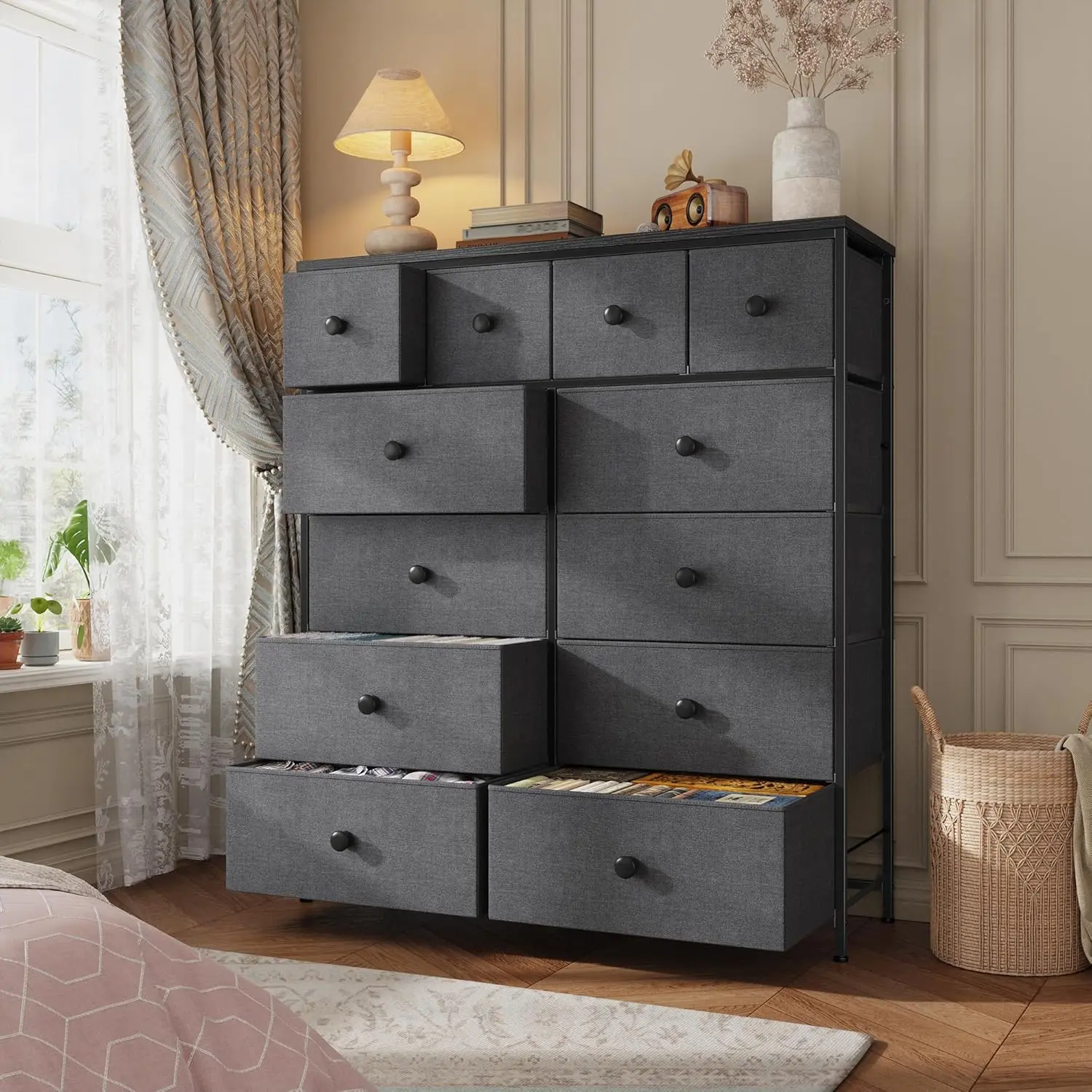 ·【"DOUBLE X" SUPPORT BAR DESIGN OF THE TALL DRESSER】 The structure of tall dressers & chests of drawers is made of advanced metal and wood boards, and the "double X" support bar is designed on the back to provide strong stability and bearing capacity for the large dresser, and each small drawer can accommodate at least 15-18 hats, medium drawer can accommodate at least 9-11 long sleeves, and large drawer can accommodate at least 16-20 shirts.
