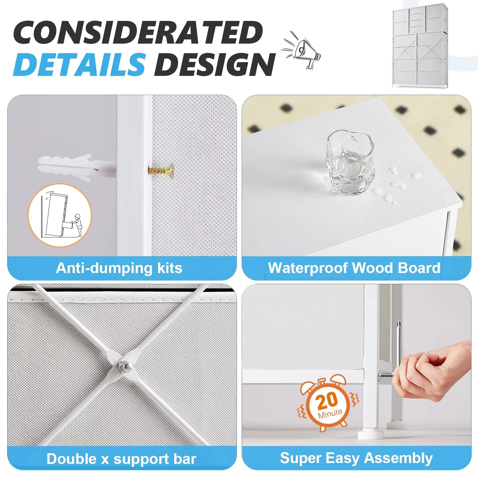 ·【16 DRAWERS DRESSER FOR BEDROOM】 The size of this white dresser for bedroom is 11.8"D x 37.5"W x 57"H. 16 fabric drawers dresser not only takes up less space, but also provide enough storage space to store clothes, scarves, socks, T-shirts, pants, sunglasses . Keep your room clean and tidy all the time.