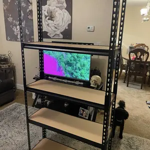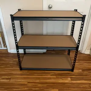 Not as sturdy as the ad I saw made it seem. However, for what I’m using it for it is perfect. We needed a rack with adjustable shelves to display my daughter’s Lego sets. The ad showed a lady laying on one of the shelves in her garage and with large totes. There’s no way with this one.