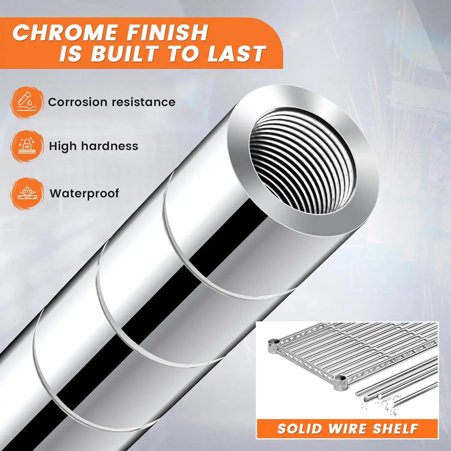 Β·γWire Shelf with chrome finish-Durable and rustproof γIndustrial-strength steel made this garage shelves, and adopts a unique chrome plating process, which not only ensures its sturdy and rust prevention, moisture resistance, corrosion resistance, but also has a beautiful appearance. Also, the garage shelves made of These metal shelving for storage are built to last That is best choice to place the shelving units and storage in your kitchen or bathroom