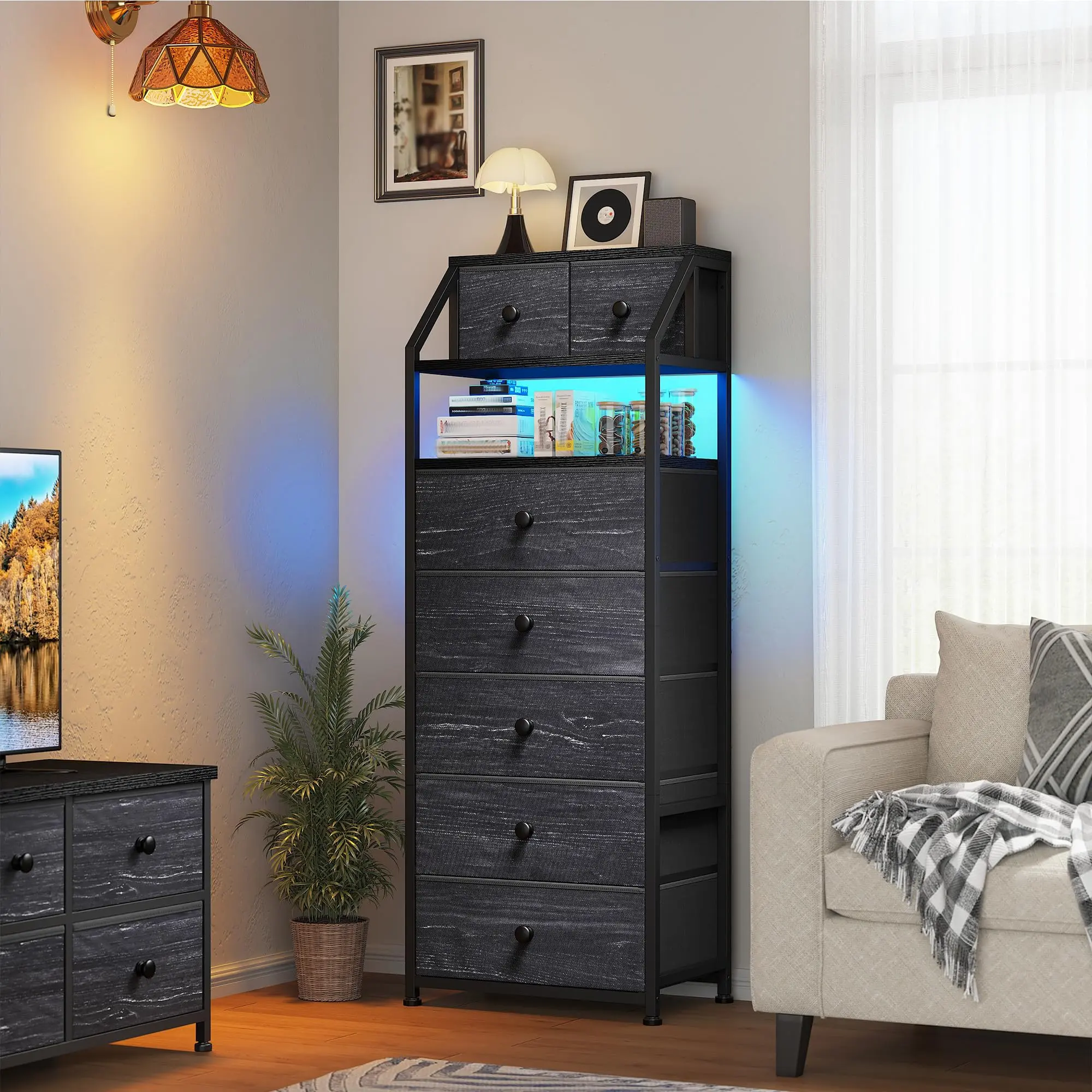 ·Customizable LED Mood Lighting-Create the perfect atmosphere with 21 dynamic and 20 static color options - ideal for Christmas mood lighting, romantic Valentine's settings, or everyday ambiance. Control colors to match your mood or holiday decor with this versatile LED dresser.