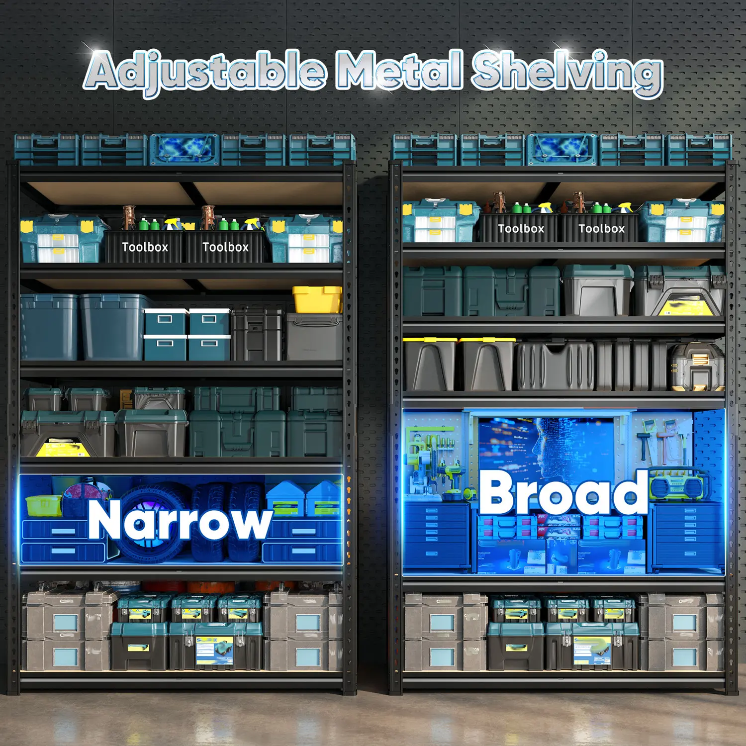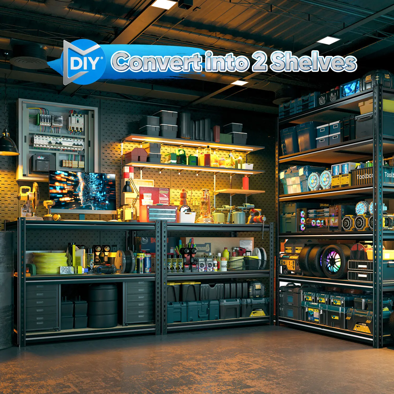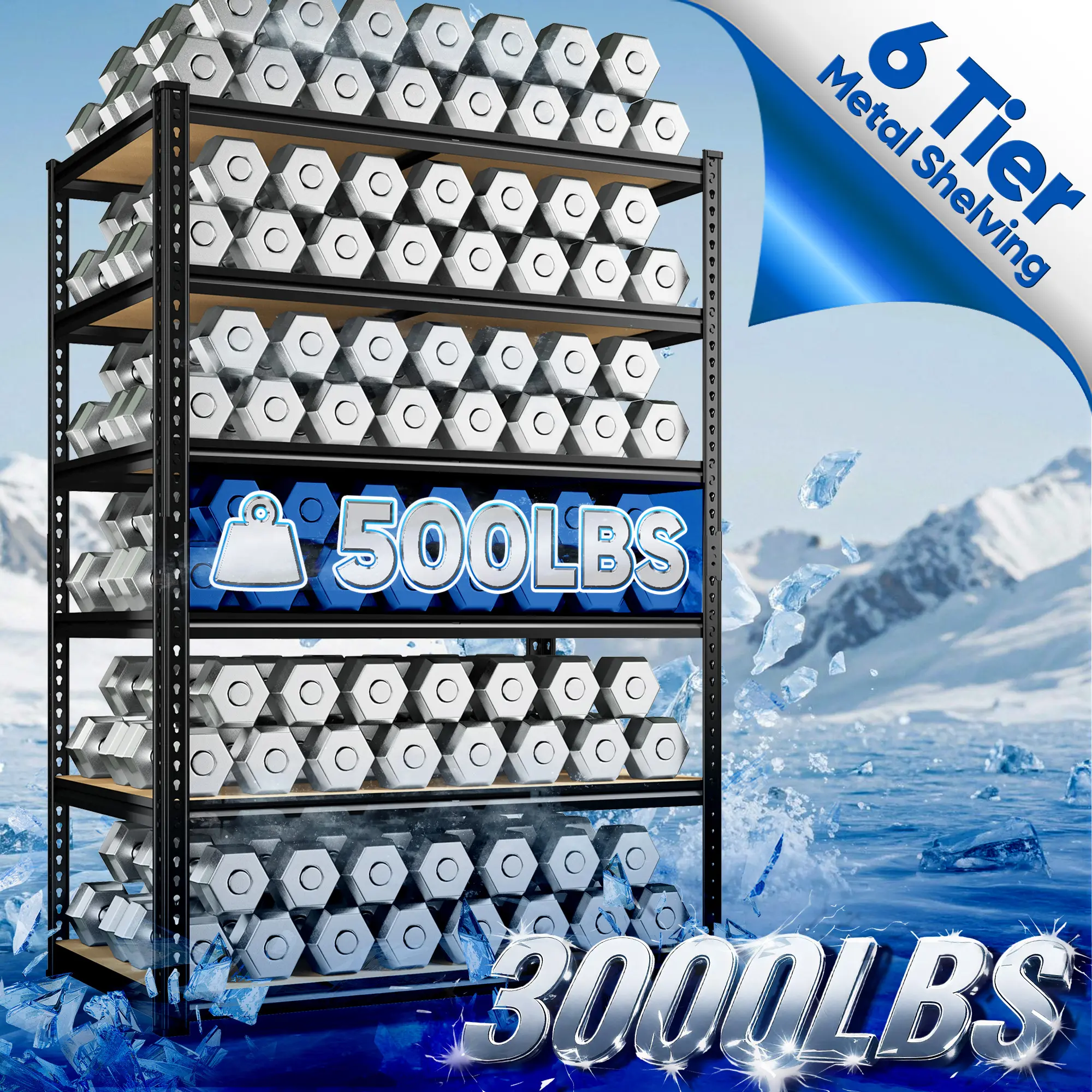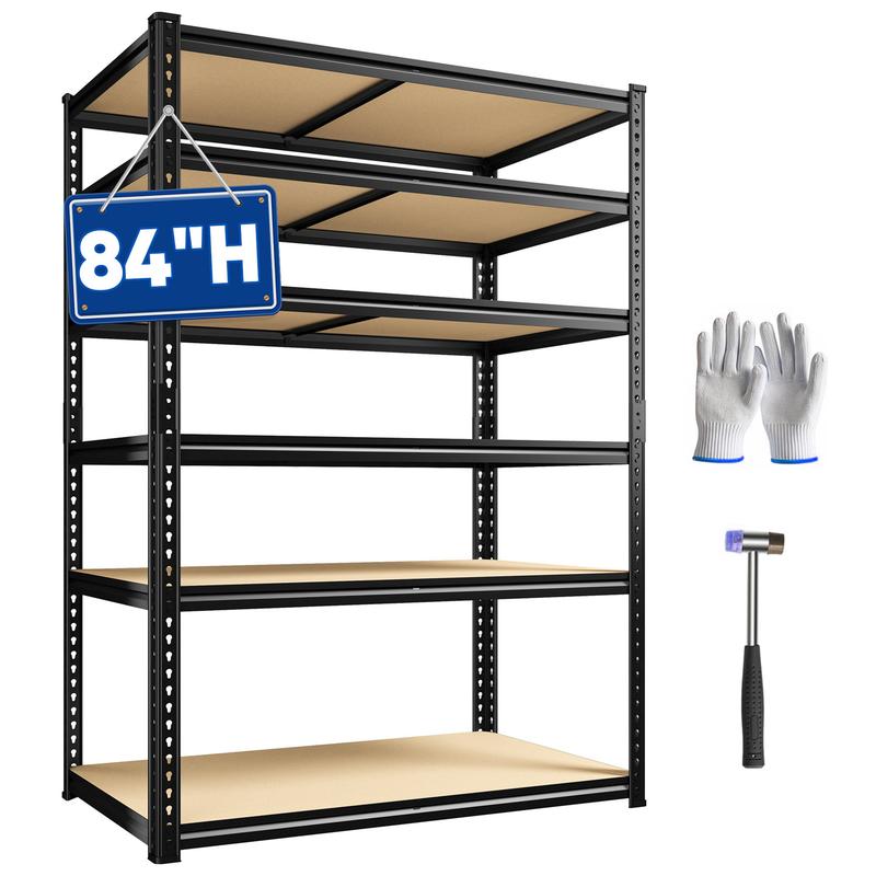 Elevate your storage space with the Raybee 84" High Garage Shelving Unit. This 6-tier storage system is perfect for garages, basements, pantries, offices, homes, and stores. It features a metal frame and MDF board construction, ensuring durability and stability. The adjustable design allows for versatile use across different settings. Load up to 3000 lbs with confidence.