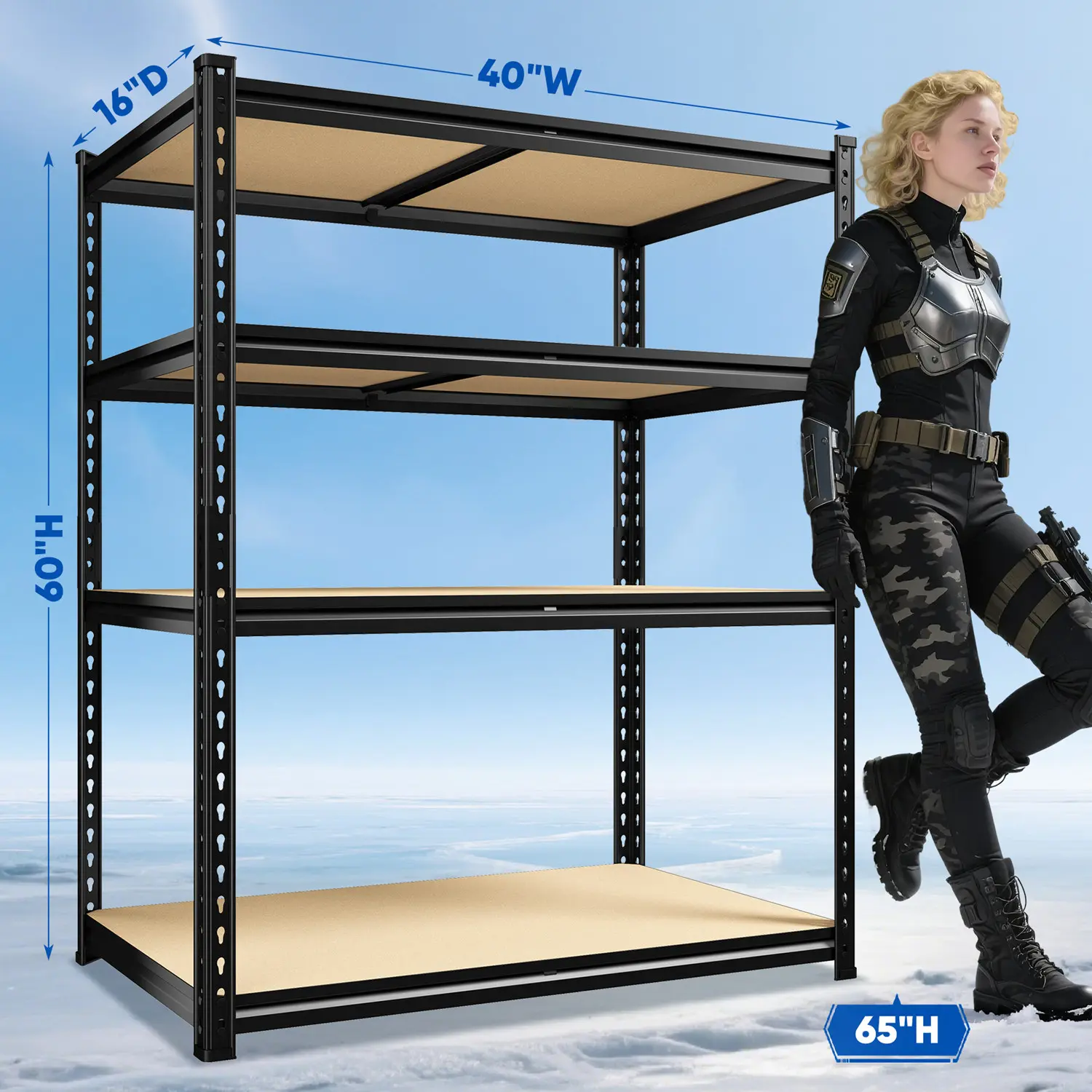 ·4-layer: 60"H x 40"W x 16"D, 2000 lbs