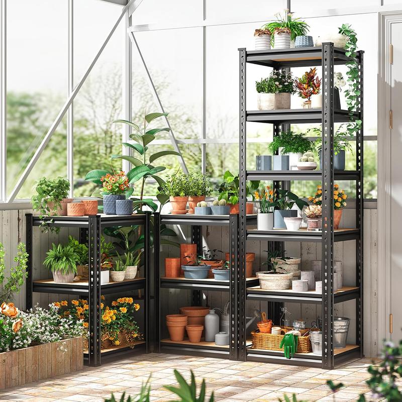 These extra-wide shelves can hold at least 10 regular 25-gallon containers, perfect for organizing spaces at home or in commercial settings like supermarkets, garages, and warehouses.