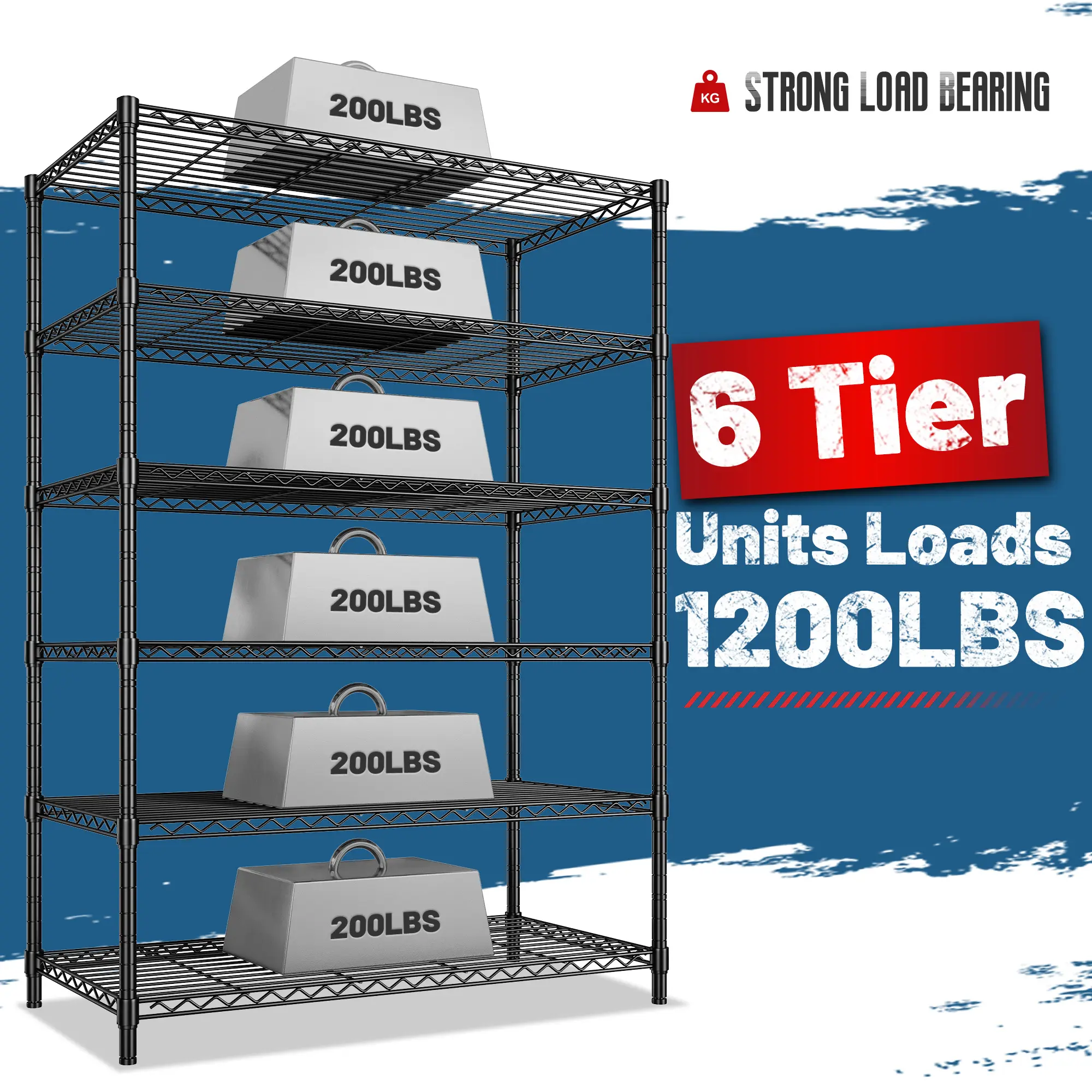 ·35.5 X 18 X 75 (inch): 6-tier, up to 1200 lbs;