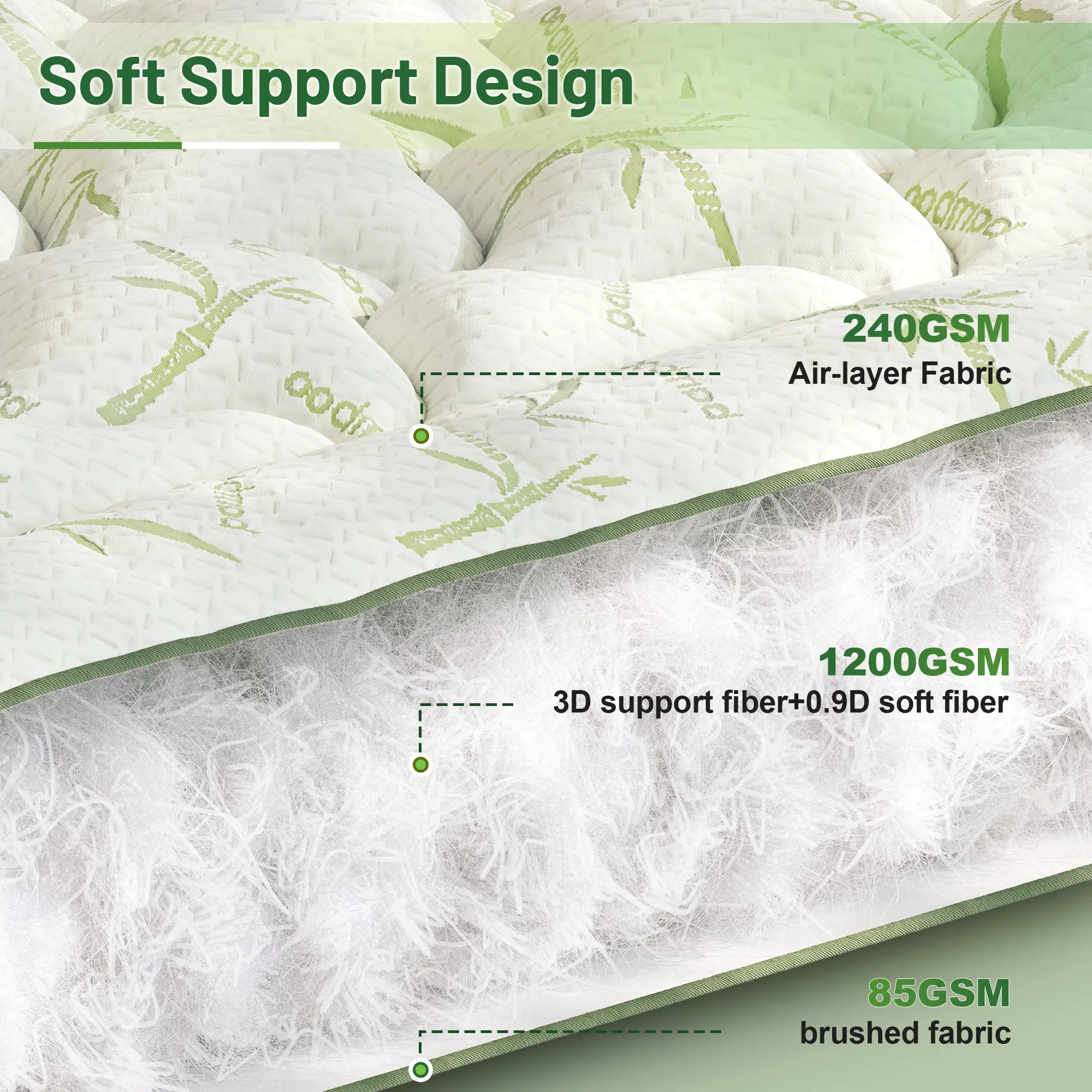 Premium 500–1200GSM, 0.9D + 3D microfiber filling — plush, supportive, and quick to rebound.
