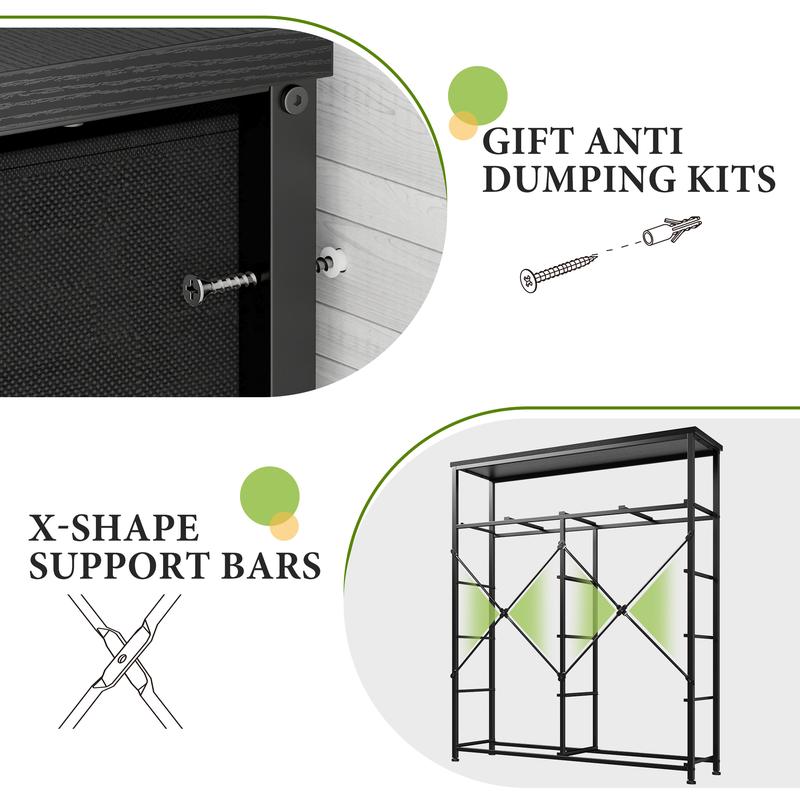 ·Sturdy Metal Frame and Stable Structure-Top 12 mm wood board of this chest of drawers holds 46 lbs for small TV, cosmetic and clutters. Thickened metal frame makes this clothes dresser and provide better supporting to drawers. X rack at back side reinforced stability, and leveling feet prevent bedroom dresser wobbling and floor damage.