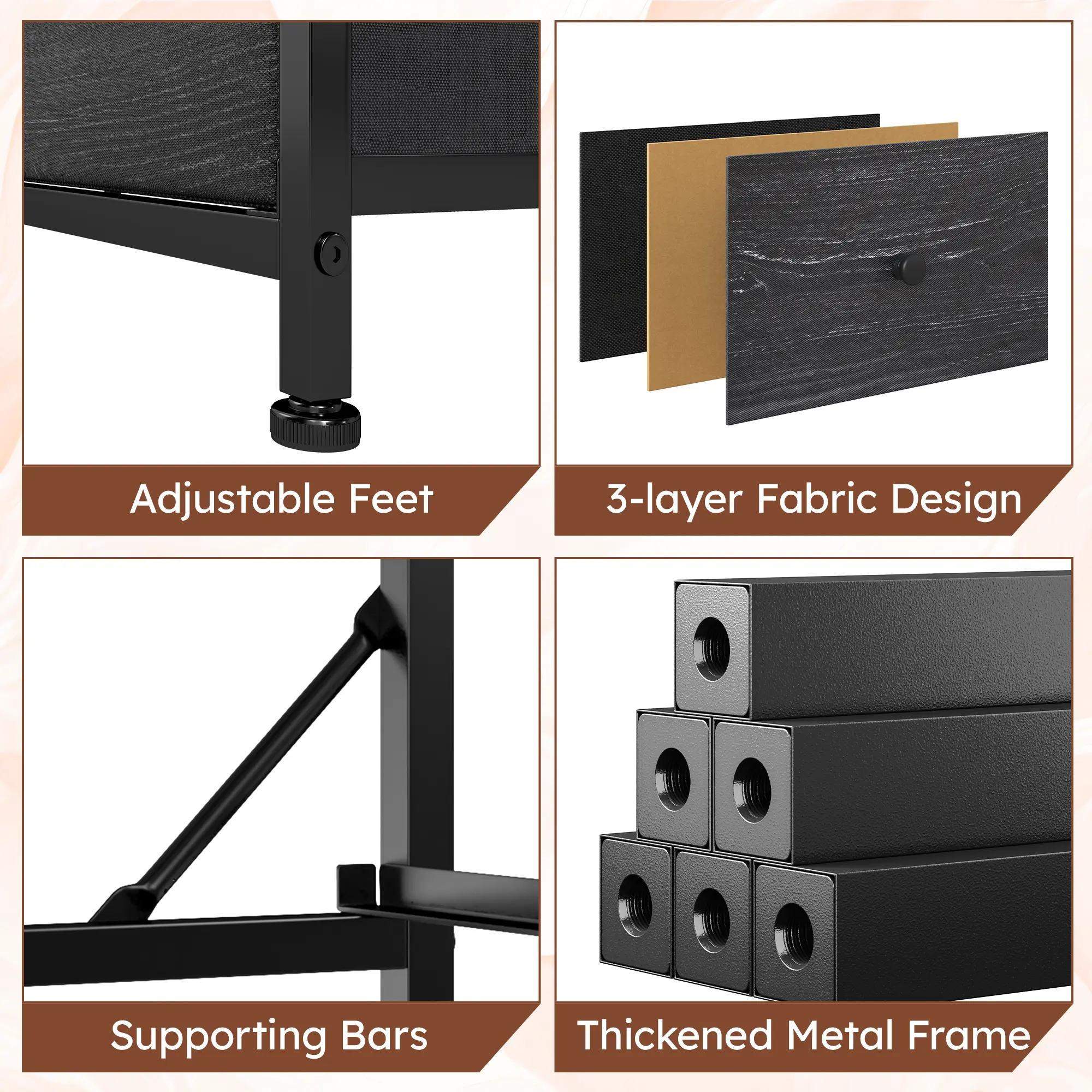 ·Upgraded Fabric and Smooth Slider-The front side of drawers for bedroom is made with high quality fabric, durable and not easily fading. Other sides adopt breathable fabric; Easy Care - wipe clean with a damp cloth and allow to air dry. Thicken metal frame make drawers slide in & out extremely easy and line in properly.