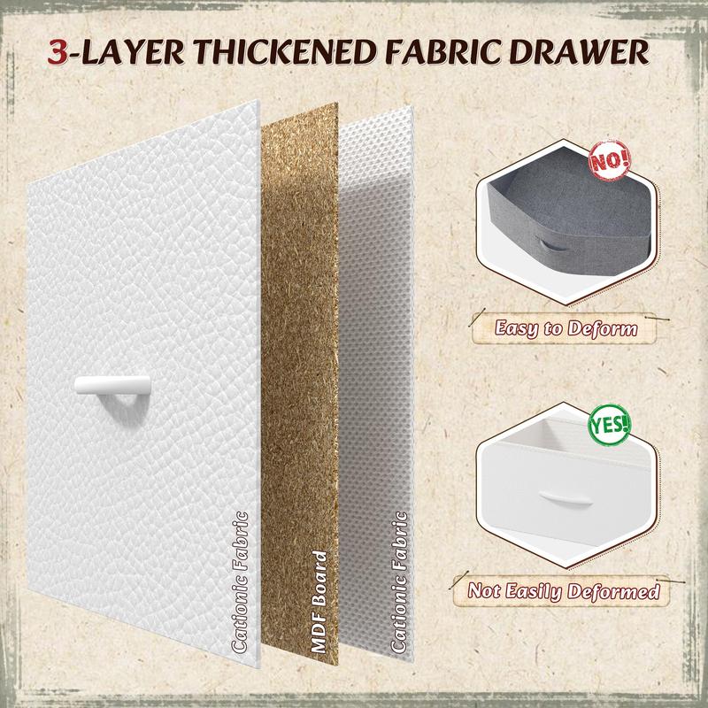 ·【Sturdy and Durable】Built to last – This bedroom dresser is crafted with premium fabric, a durable wooden top, and a sturdy metal frame for long-lasting use. The dresser includes an anti-tip kit to prevent tipping, along with 6 adjustable feet to eliminate wobbling on uneven surfaces and protect floors from scratches—ensuring a rock-solid storage dresser