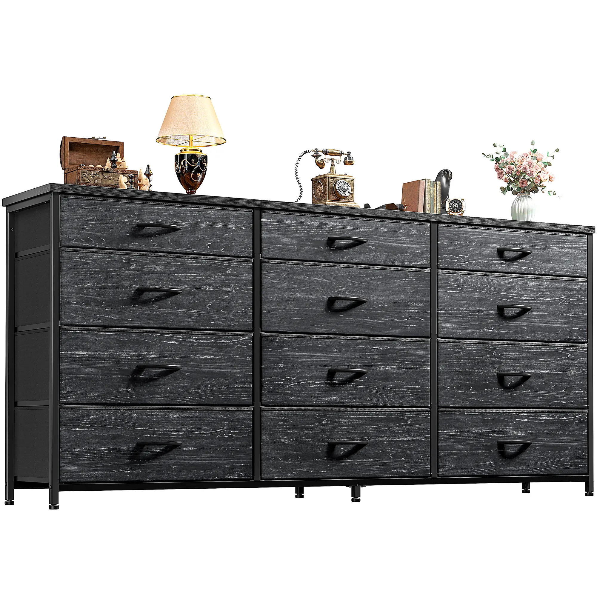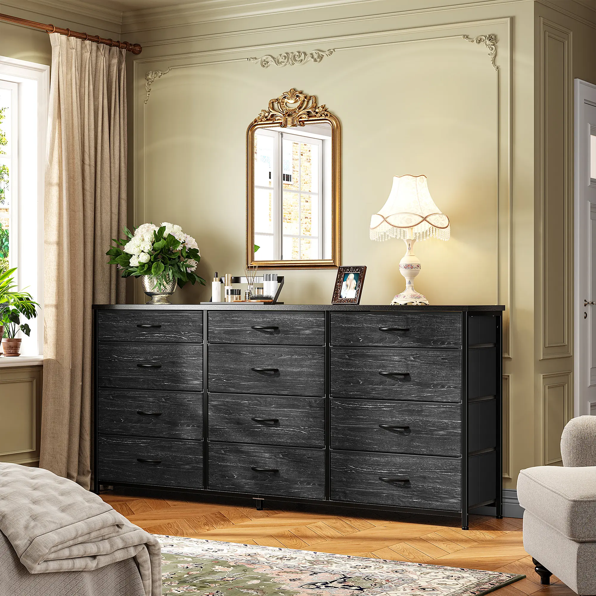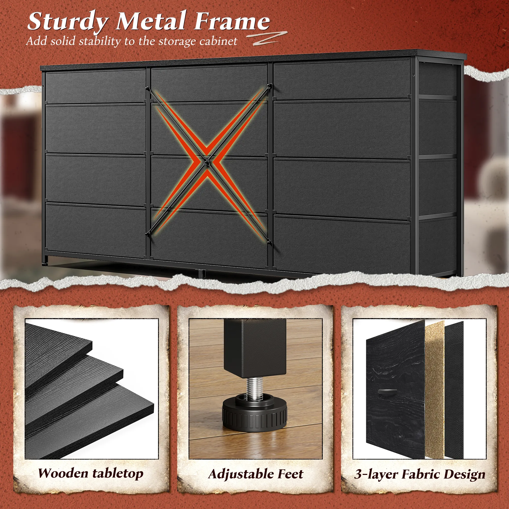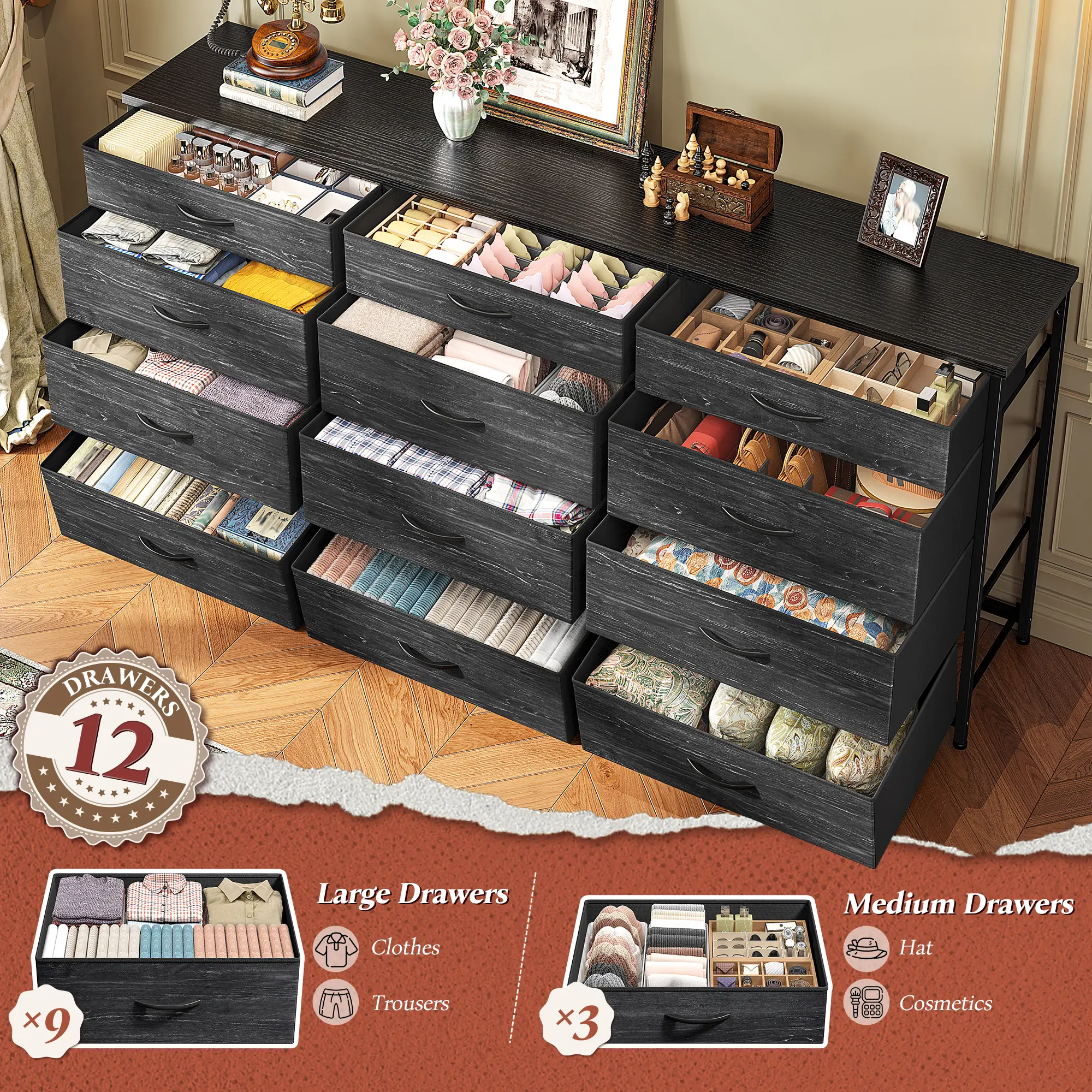 ·【12 Drawers Storage Dresser】The dresser has 12 large drawers, which can hold books, remote controls and small items in the living room, as well as clothes, blankets, socks and trousers in the bedroom and closet. This dresser for bedroom offers two types of classified storage drawers