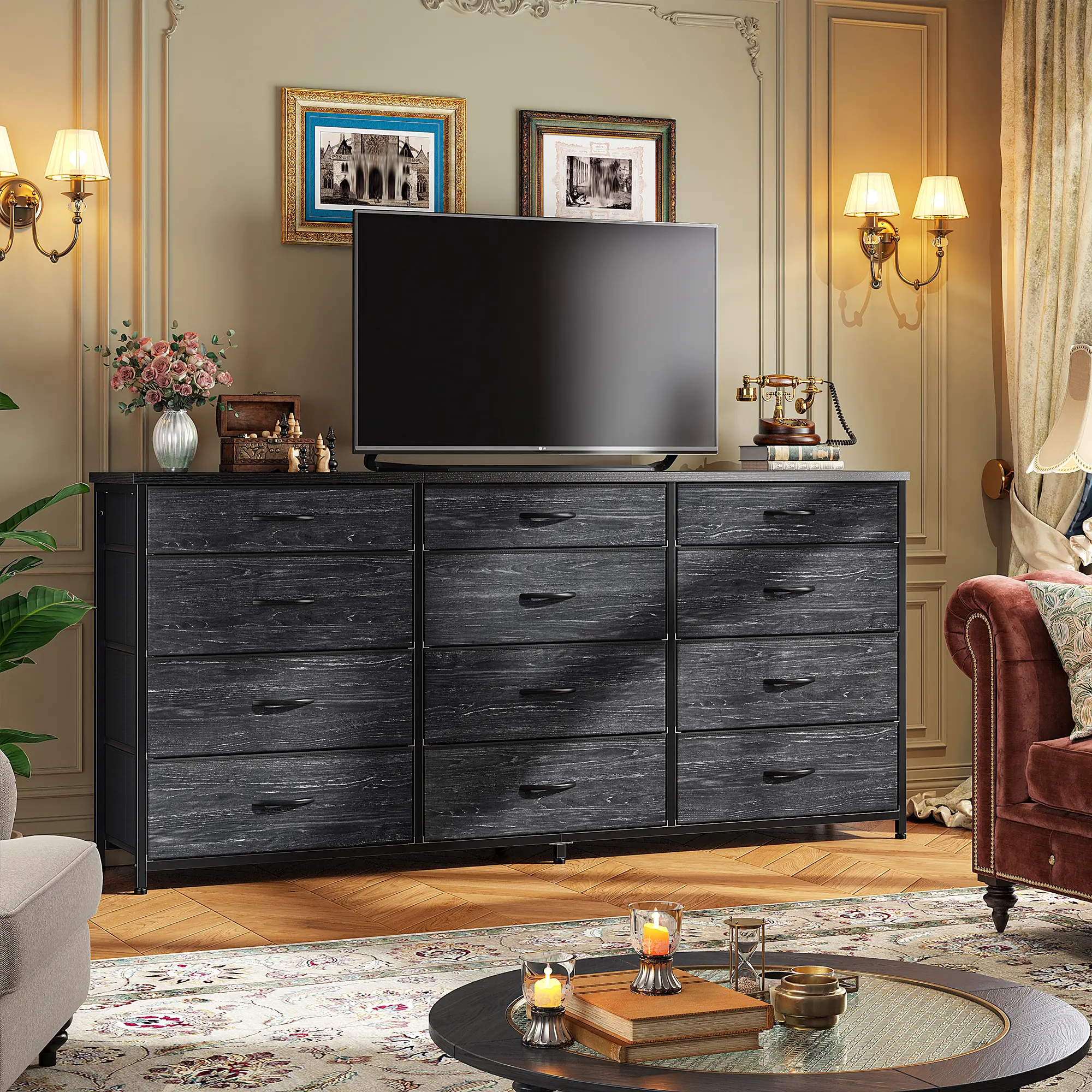 ·【Multi-functional Usage】In addition to serving as a TV stand at home, this dresser can also be used as a drawer and dressing table in the bedroom, dormitory, wardrobe, study, and entrance passage. This high-quality fabric storage cabinet can not only store various items but also decorate your house. Use this long dresser with drawers to make any space orderly