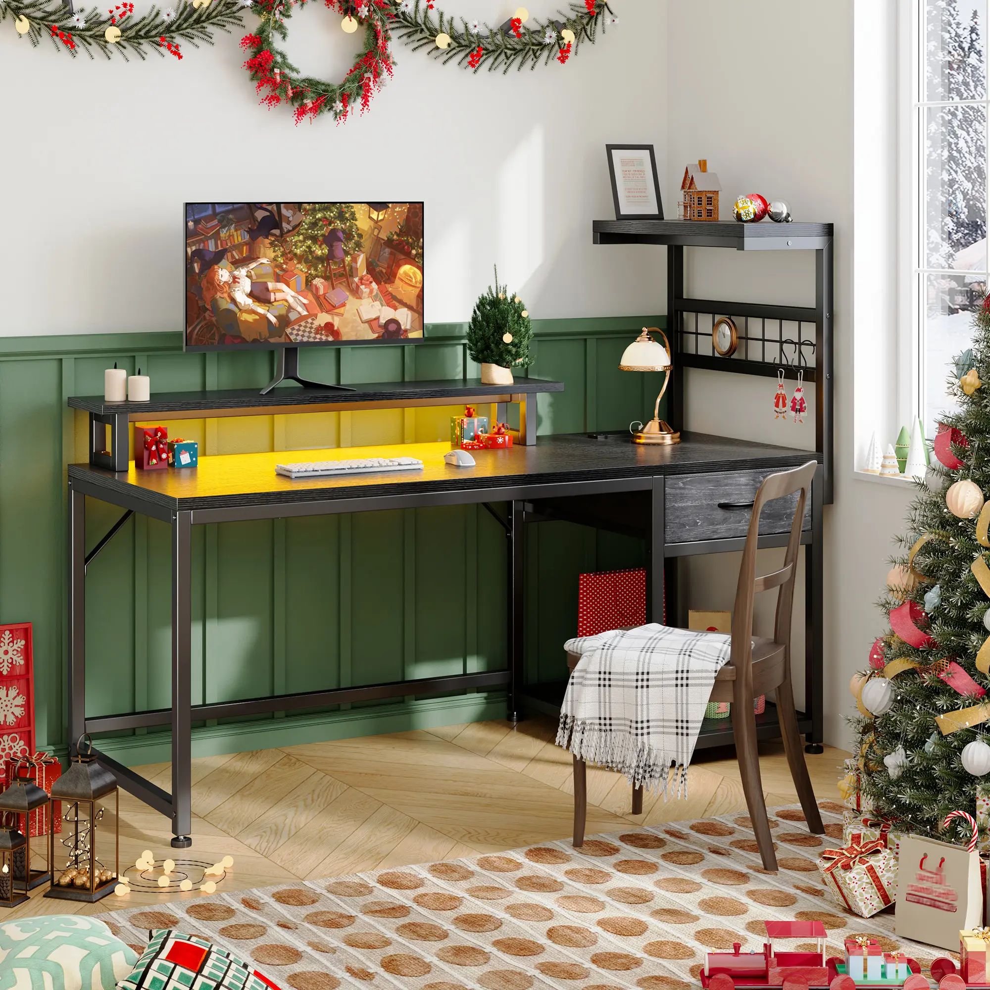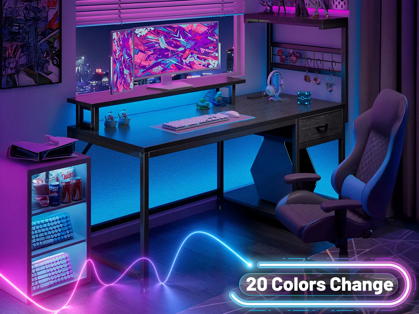 The desk features an inspiring RGB LED light strip under the monitor shelf. It offers 20 static colors and 20 dynamic modes. Control it via remote for a better gaming or work atmosphere. It also helps reduce eye strain and improve focus.