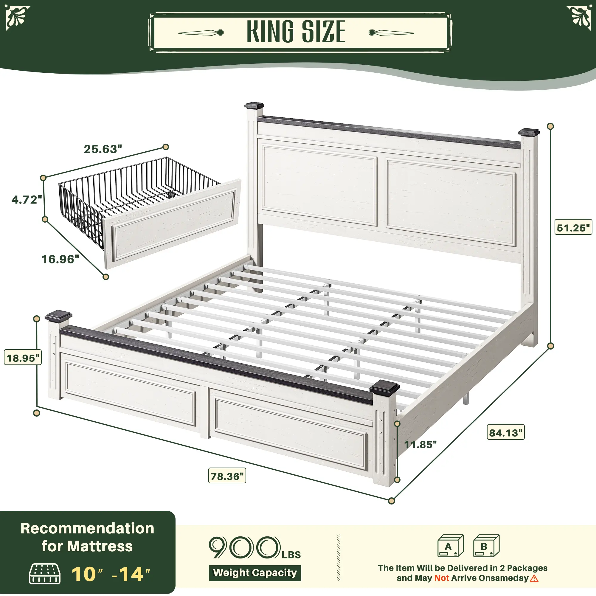 ·The king bed will arrive in two boxes, which may not arrive on the same day. Don't worry!
