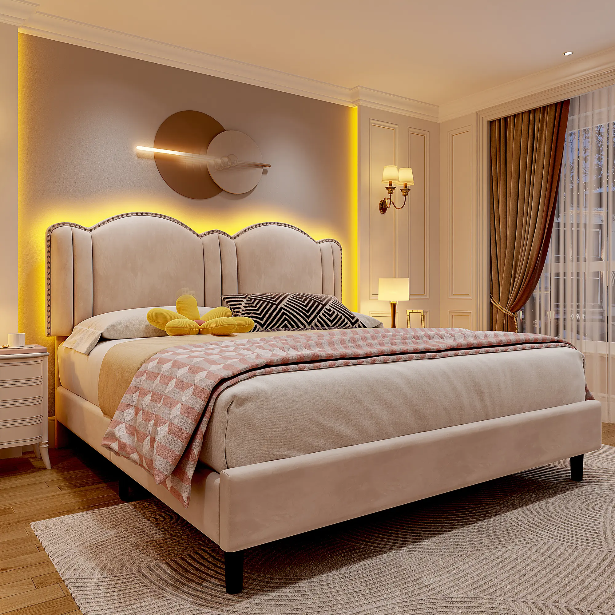 ·【Elegant&Modern】This Bed Frame with headboard is crafted with Soft and skin-friendly smooth velvet fabric,The simple yet elegant design fits seamlessly with space. Giving you a comfortable sleep experience.Give you room an upgrade right now!