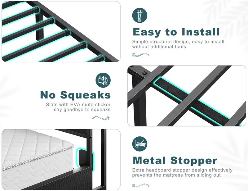Heavy-Duty Support: Metal slats and support bars hold up to 1100lbs, ensuring stability and long-lasting comfort.