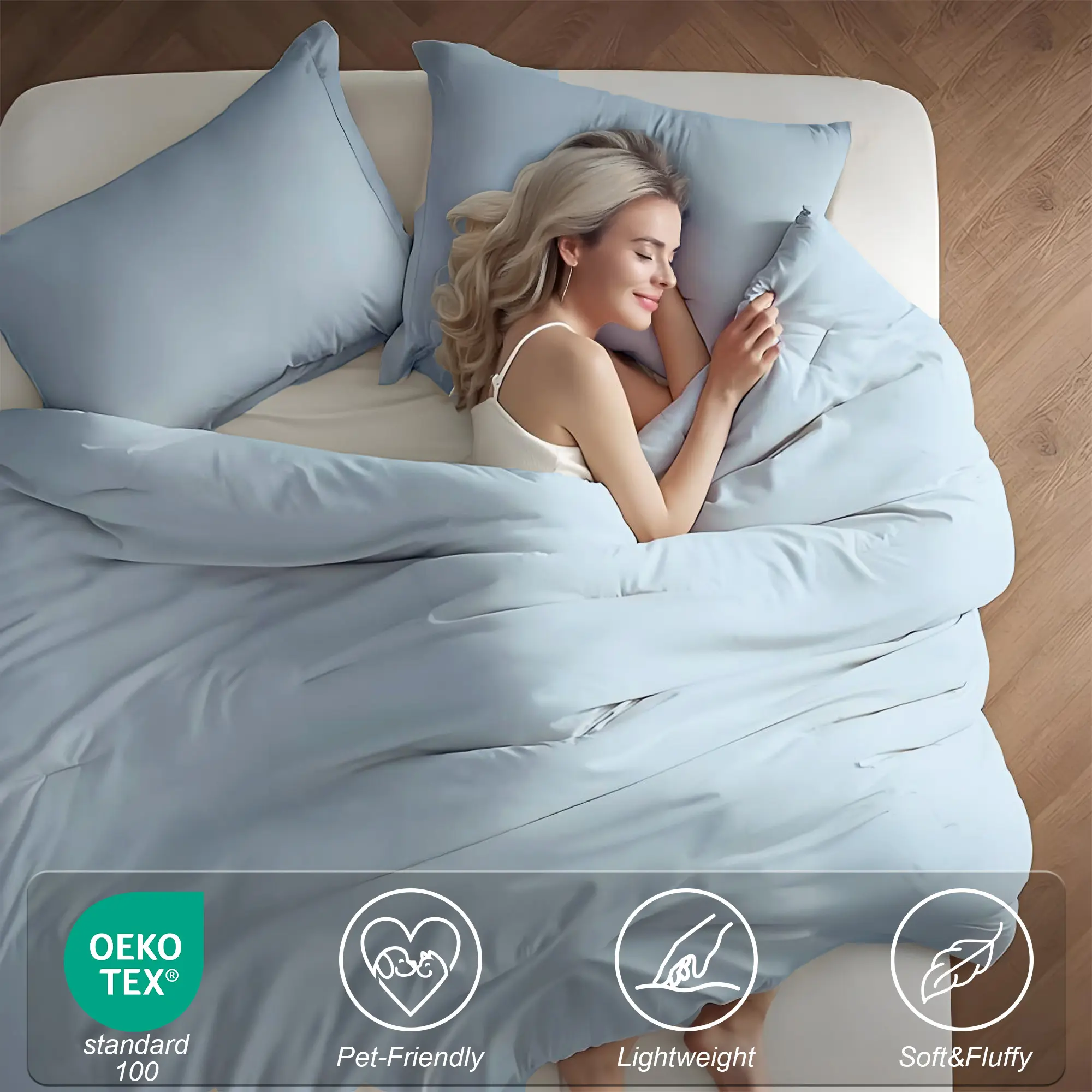 ·Cloud-Like Warmth & Comfort: Experience the signature embrace of Raybee's expertly crafted microfiber filling blend. Meticulously engineered for the perfect balance of lightweight comfort and enveloping warmth, it creates a truly cloud-like sleep experience.