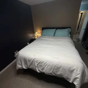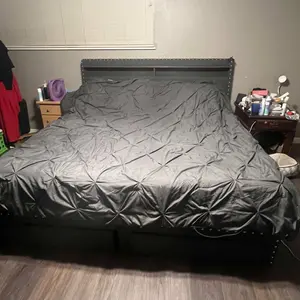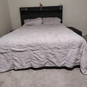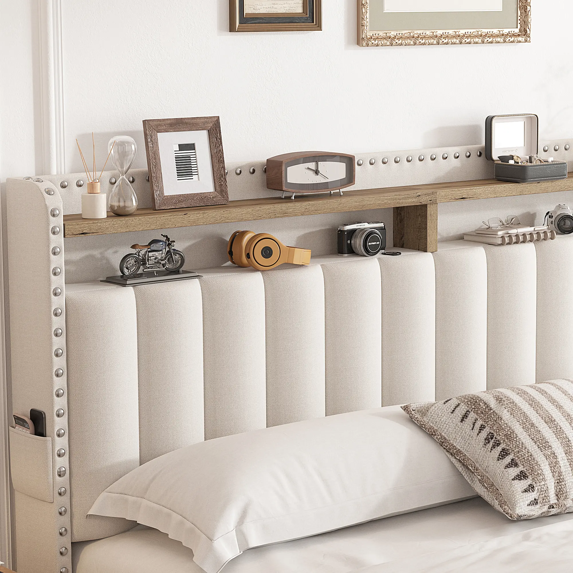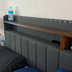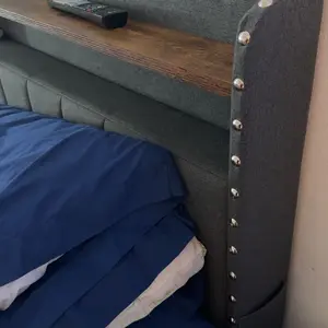 Cozy leanning on luxury Upholstered headbaord for reading or moving nights, and keep snacks, remoters in arm reach.