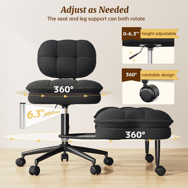 ·[Full Adjustability] Both the seat and footrest rotate 360°, while the height adjusts smoothly via an SGS-certified gas lift to fit users of all sizes.