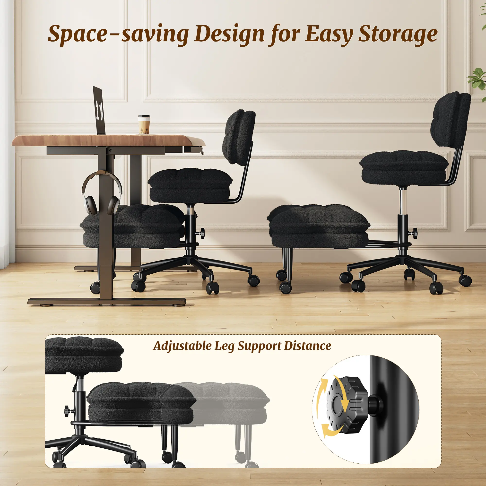 Ā·[Space-Saving Footrest] The retractable footrest tucks neatly under desks to save space and prevent bumps, and locks securely in place whenever you need it.